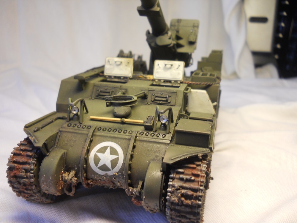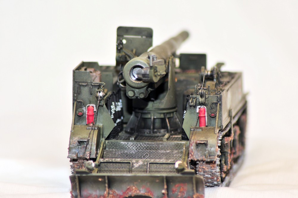 Давно хотел собрать сие чудо ждал появления в интернет магазине дождался! Собирал не спеша . По модели. красил аэром тамиевской краской делал цвет модуляцию, правда не очень видно. Ролики точил сам на станке. так как под штатные не смог просунуть тросик. Лебедка полностью рабочая. Грязь делал сам пастель и пва смывку тоже сам с масл краски, сделал открывающимся затвор у орудия . Прошу сильно не ругать