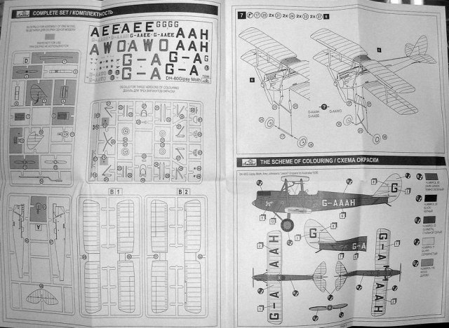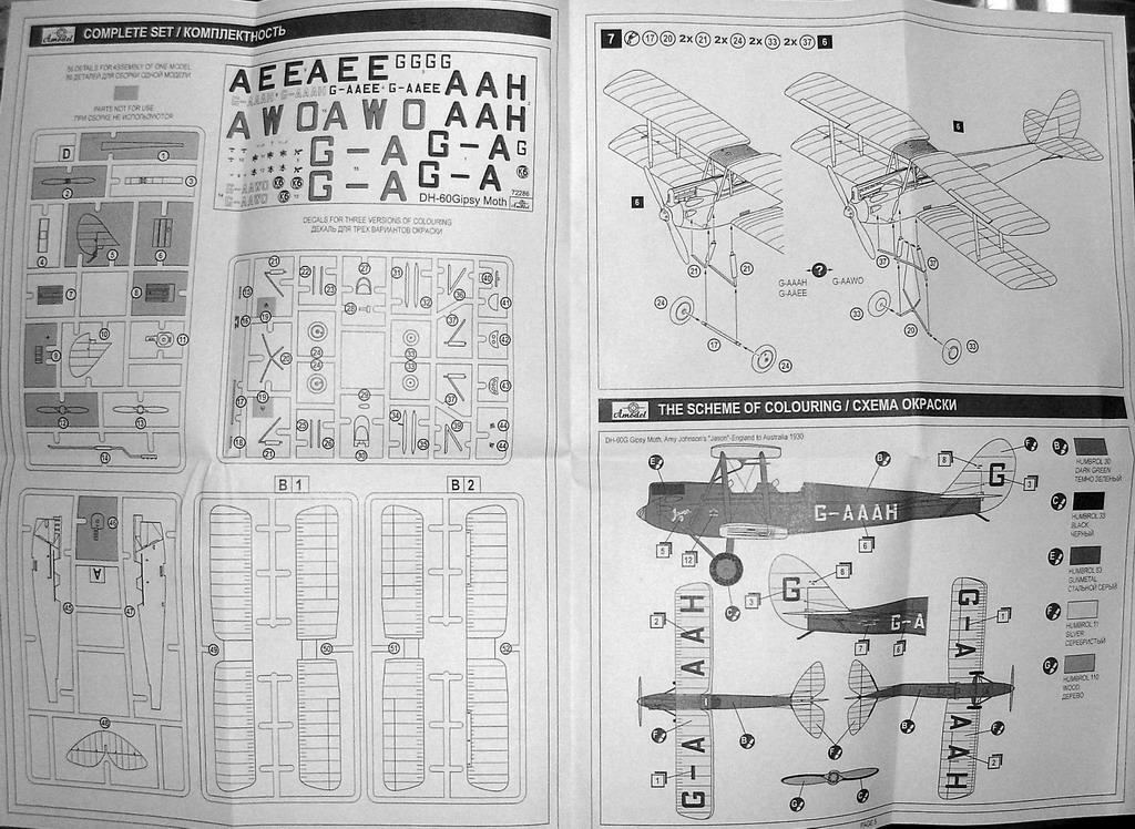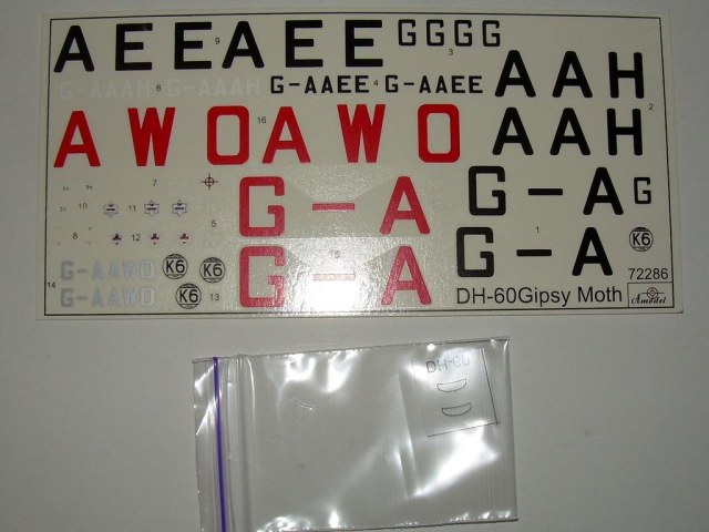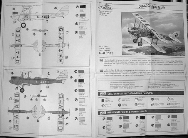 Всех приветствую. Выкладываю очередное а-моделовское изделие - DH-60G Gipsy Moth. Это вовсе не перепак ново-фроговской модели (у А-модела когда-то такой был, причем с тем же рисунком на коробке), а совершенно новый кит. Он содержит 56 деталей (часть из которых не используется, что наводит мысль о продолжении). Качество литья - характерное для позднего А-модела, т.е. неплохое как для шорт-рана. Козырьки кабин даны пленочной заготовкой. Присутствует некоторый интерьер кабин. Декаль на 3 цивильных варианта, в т.ч. и на самолет Эми Джонсон (его же в свое время давал и Фрог), а наличие лишнего пропеллера дает возможность сделать запасной пропеллер на борту, о чем в инструкции ни слова. В целом, а-моделовская новинка - хорошая альтернатива старому доброму Фрогу. Цена в Киеве - 120 гривень. Увы, гривня опять обвалилась и моделизм опять подорожал, да и не он один.