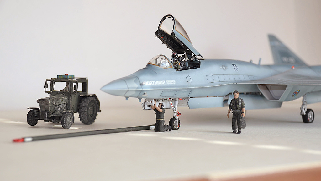 Ну вот вроде и всё. Делал для себя, так как давно хотел этого редкого красавца. Теперь буду собирать ему его более удачливого конкурента YF-22. Уже лежит ждёт.