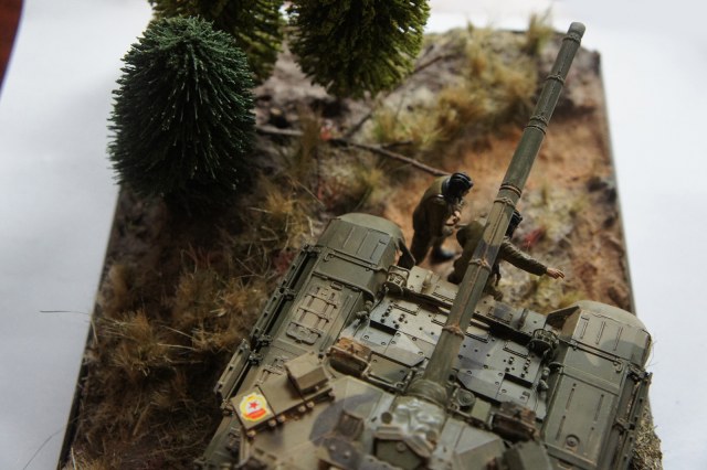 К танку не стану придираться, современная техника не мое, а вот основа понравилась. живо. Прямо ощущается песок соснового леса.