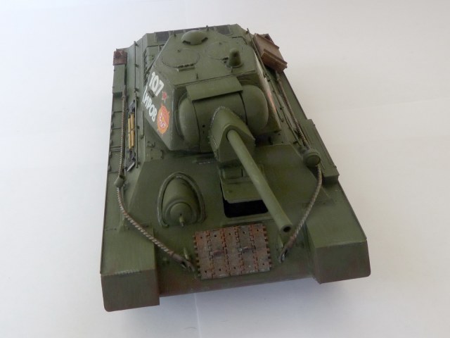 Модель собиралась сыну в коллекцию. В моделировании не профессионал, так что помидоры не кидайте). Покраска кисть, акриловой тамией.Единственное заменил траки на MSD. По поводу мат. части могут быть огрехи, собирал из коробки. Но учитывая количество выпущенных танков, вероятность существования похожего на мой существует))).