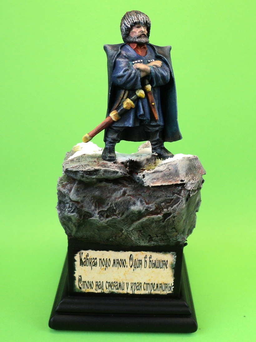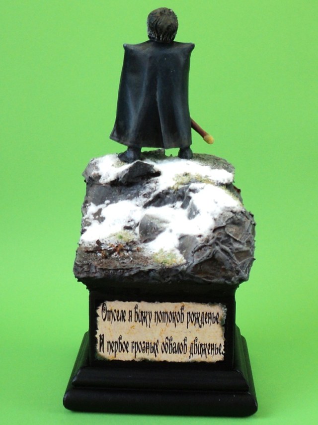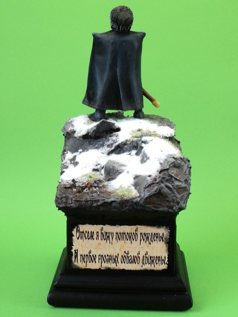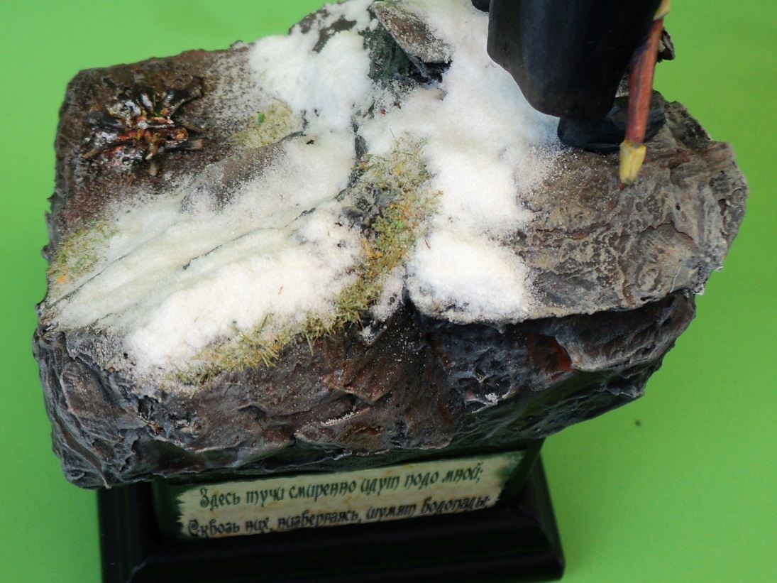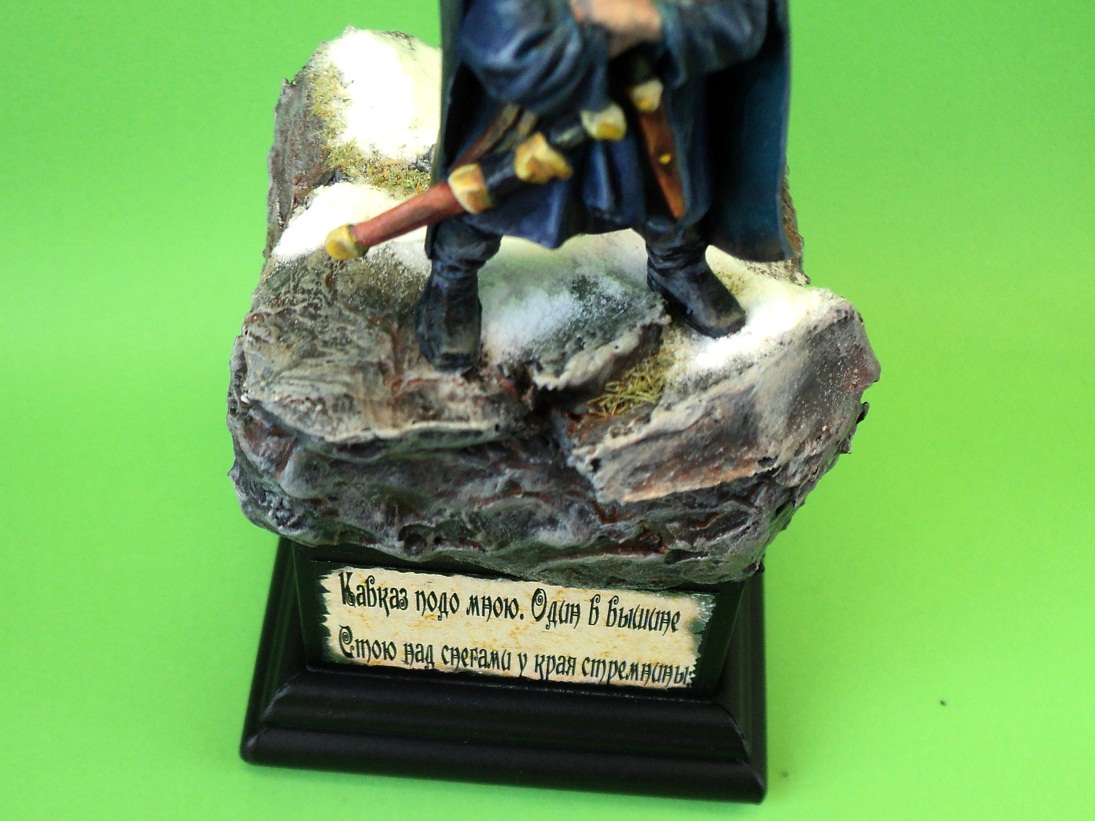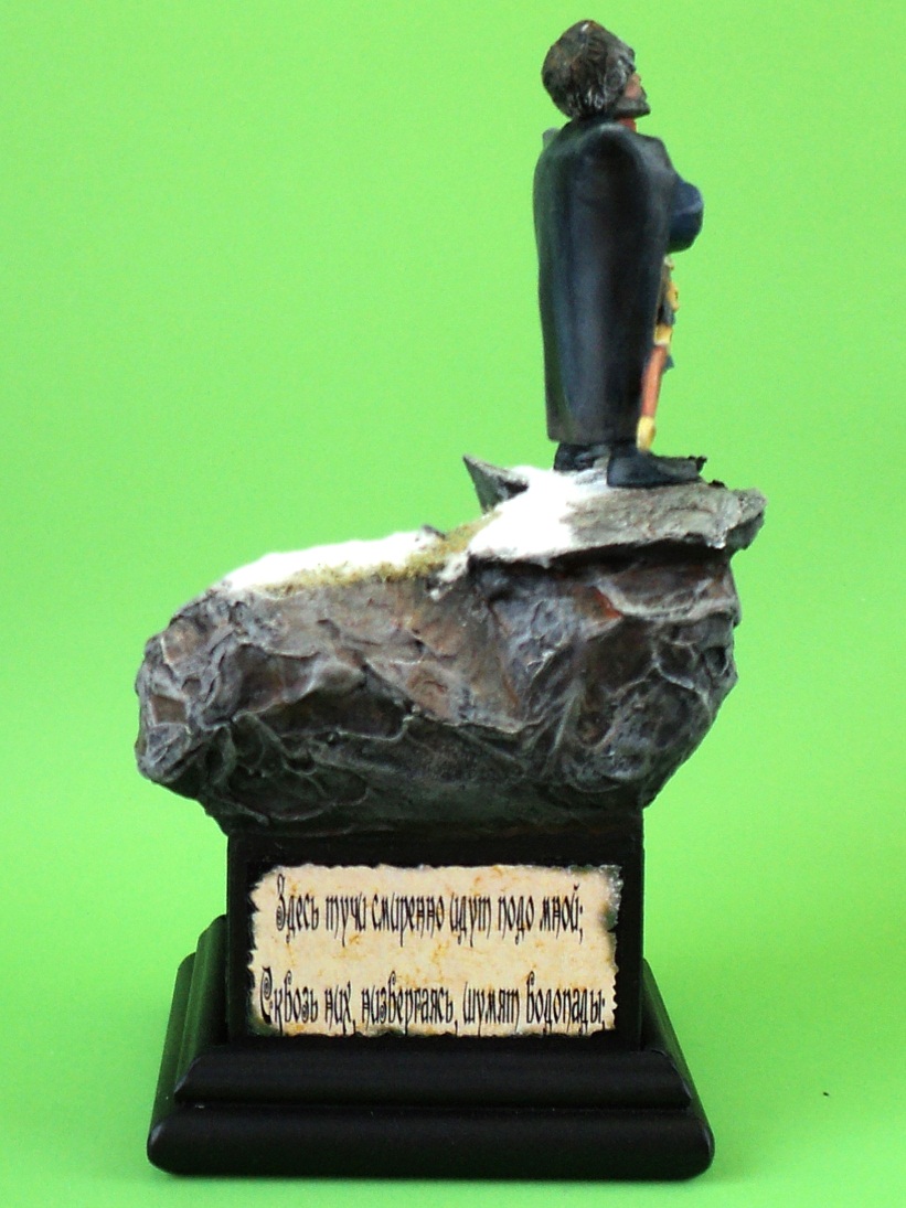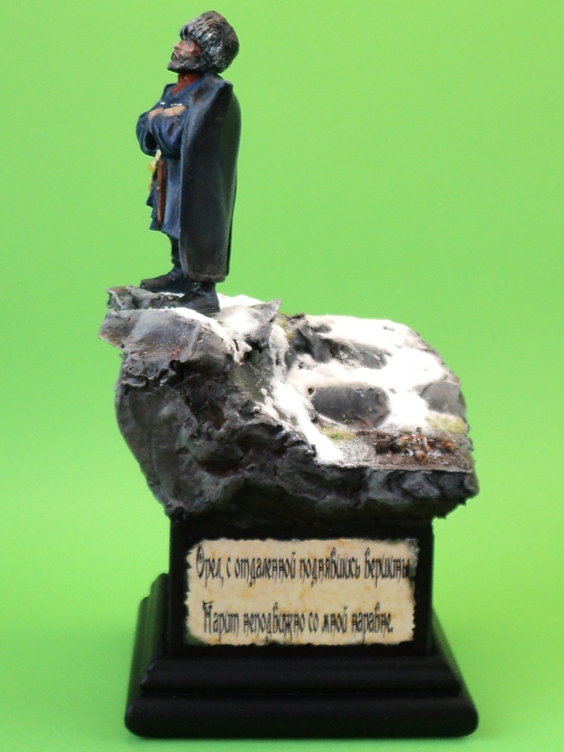Фигурка из игрового набора, качеством скульптуры и исторической достоверностью не блещет. Использовал как "кошку" для тренировки в росписи, ну и как то сама собой сделалась подставка. Приправил все стихами Великого Поэта. Роспись акрилом.