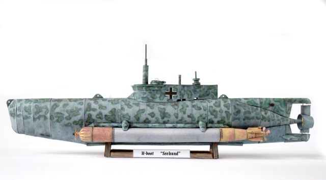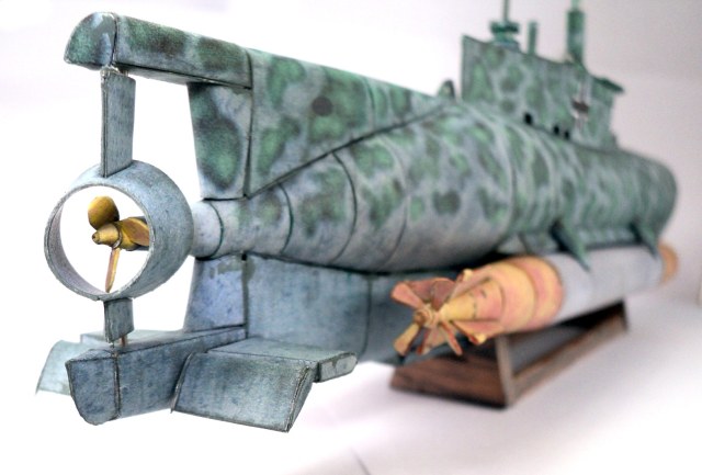 Для бумаги, на мой взгляд, нормальная получилась лодочка. По сравнению с пластиком торпеды смотрятся непривычно угловато, как и другие места корпуса. Что не совсем понравилось, это( возможно из за непривычности материала) живость водной поверхности не связывается в единое целое с материалом модели, опять же, на мой взгляд. Тем не менее, работа выполнена достойная и весьма интересная по оформлению. Пожалуй, можно в галерею завести.