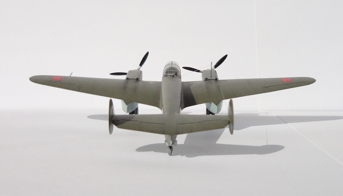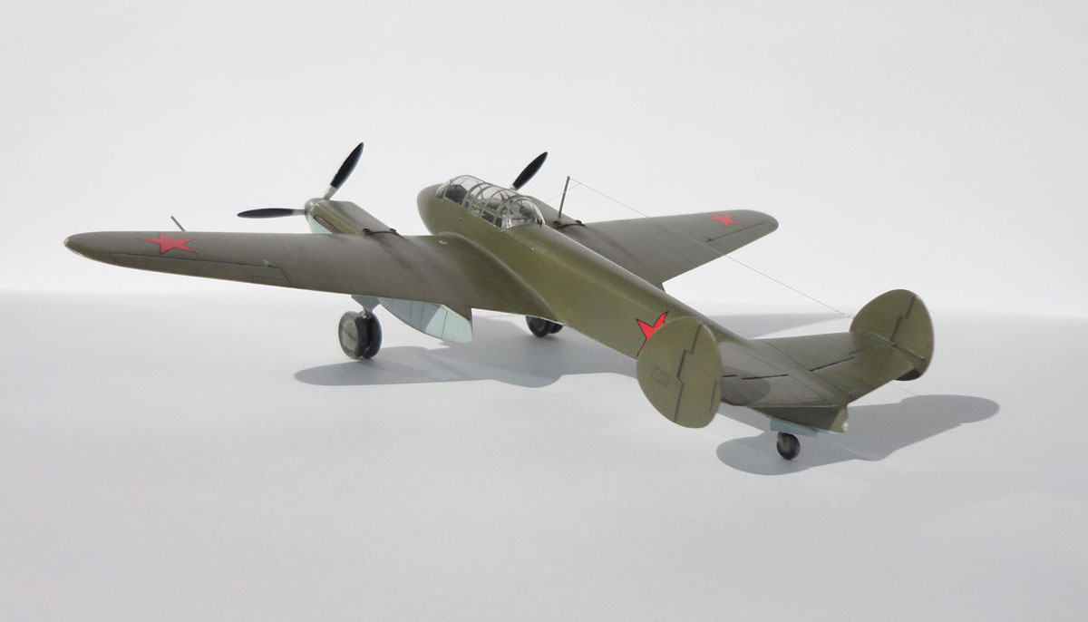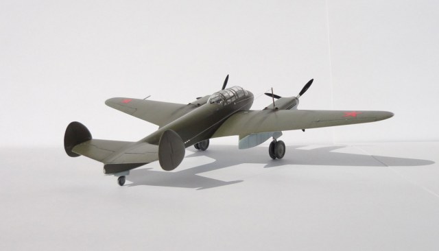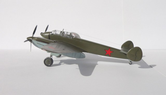Вот и завершена ещё одна модель. Модель довольно сложная и интересная. В основном трудности возникли из-за невысокого качества отливок, обрывочной информации по кабине летнаба и отсутствия "правильных" чертежей. Чтобы найти определённый элемент конструкции самолёта, фотографии приходилось пересматривать большое количество раз. Короче говоря, работа творческая. В процессе работы были опробованы и успешно применены новые для меня технологии, такие как: предварительное затенение, маски для фонаря кабины, применение игл для шприцов в силовом наборе. Перечислять переделки не буду, всего не упомню и что-то всё равно забуду. Скажу что ШКАС и звёзды с чёрным кантом от ICM-овского СБ, краска Humbrol - самостоятельно смешанная, лак и некоторые пигменты - ХоМа.