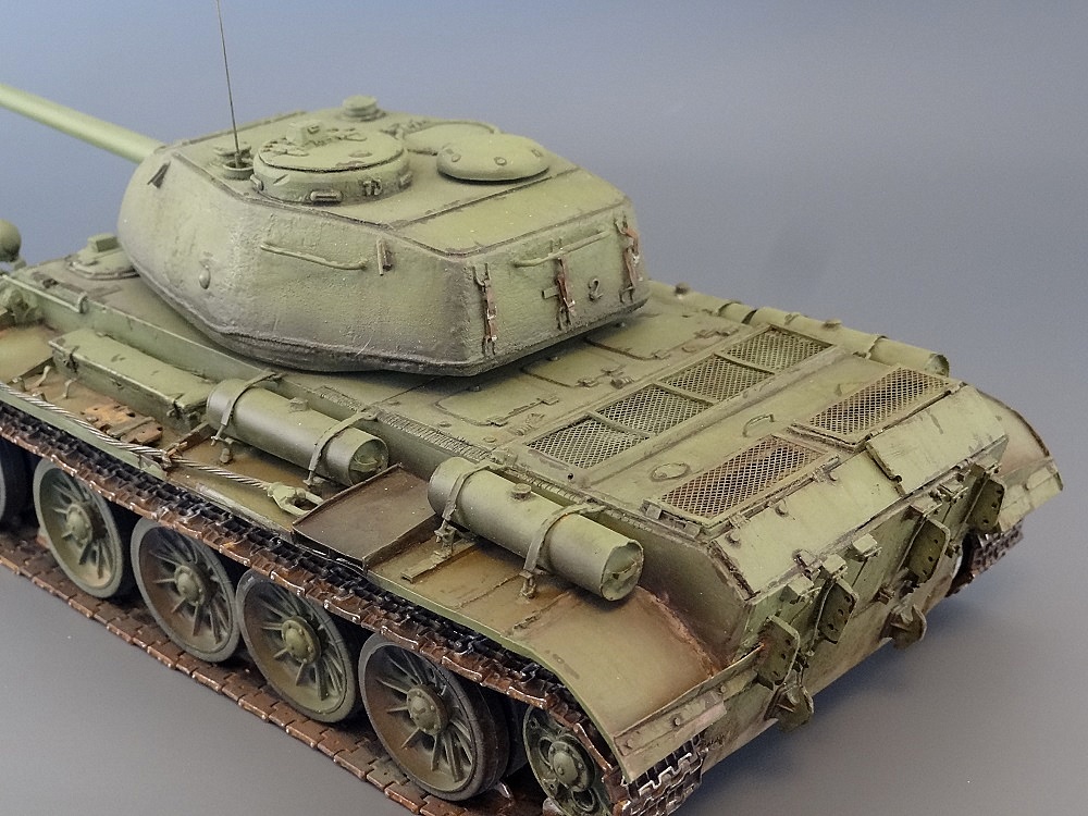 Какая интересная работа! Здорово сделан! Сейчас по каналу "Звезда" идет вечером фильм (скорее его повтор) "Броня России". Так вот, о Т-44 там говорилось достаточно. Было интересно увидеть на экране и практически тут же вашу модель. Очень познавательно. В частности говорилось: о другом варианте размещения двигателя. Сдвигании башни назад, размещении впереди совершенно другого броневого листа, и, соответственно изменении места входа в танк мех.водителя.