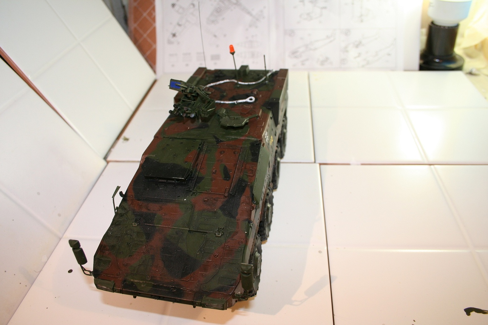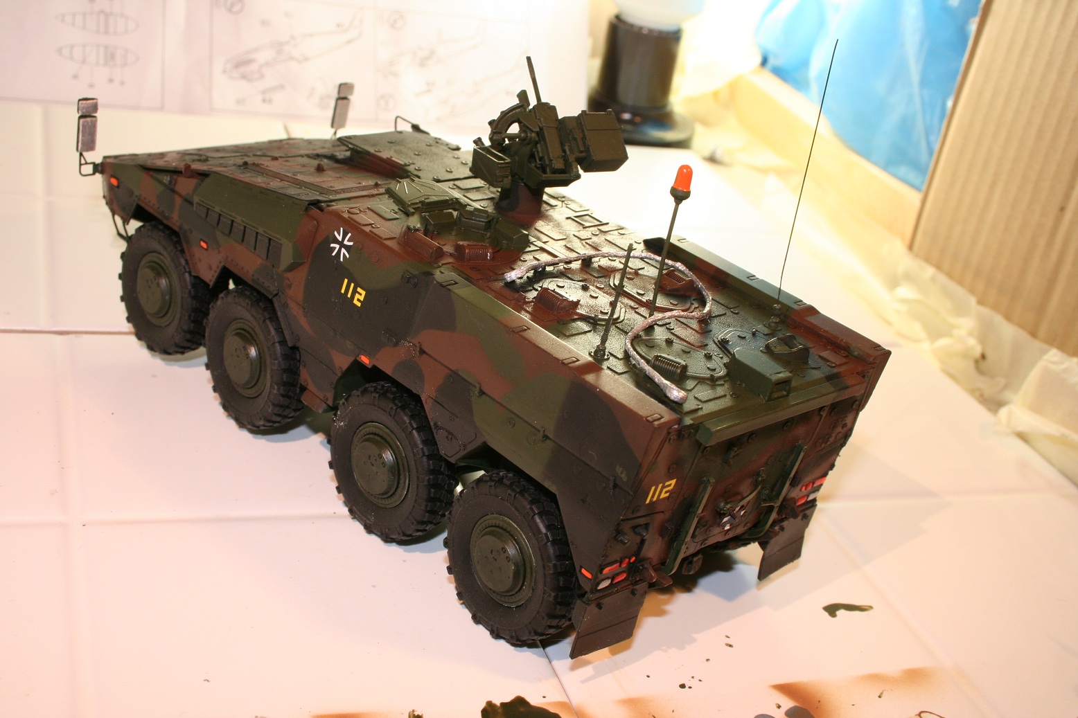 Чтож с возвращением) . Надо теперь хорошо освоить аэрограф. Пока окраска грубоватая вышла. Трос можно вообще убрать ,как то инородно смотрится. Фон не очень удачный. Обратите внимание некоторые колёса не касаются поверхности.