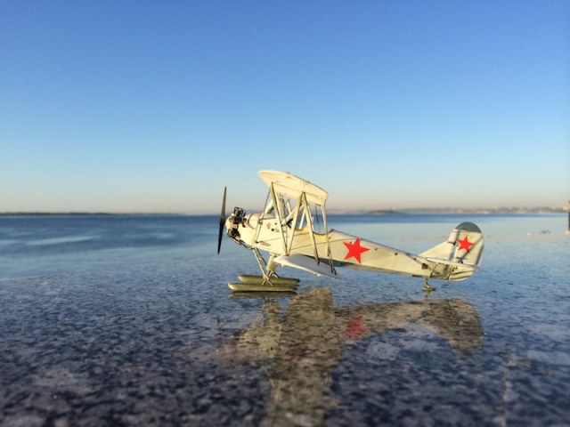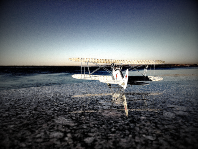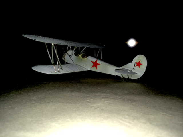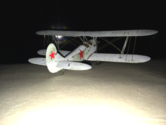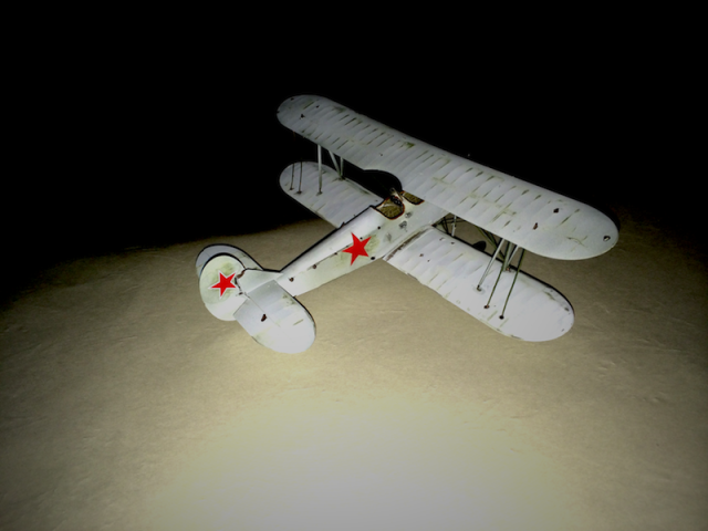 Фотографии, конечно, красивы сами по себе, но модель как-то на них не воспринимается. Нужны крупные планы, хотя в таком случае они вскроют, наверно, недостатки. Облик зимнего камуфляжа пожалуй получился, а вот расчалки и тяги не удались. И надо было подобрать все звезды без белых окантовок, было бы лучше.