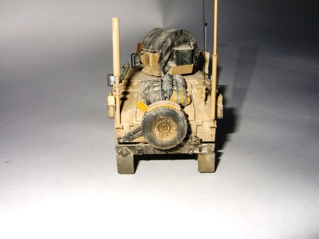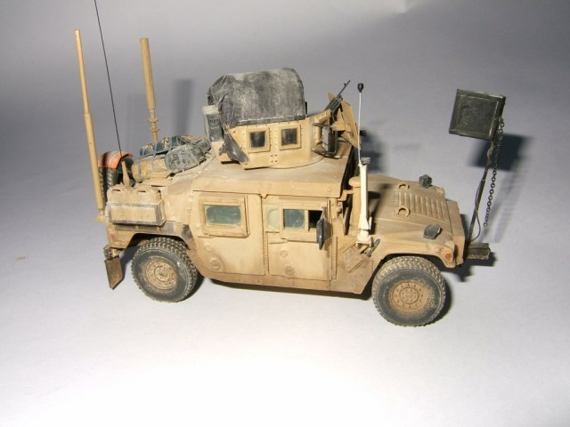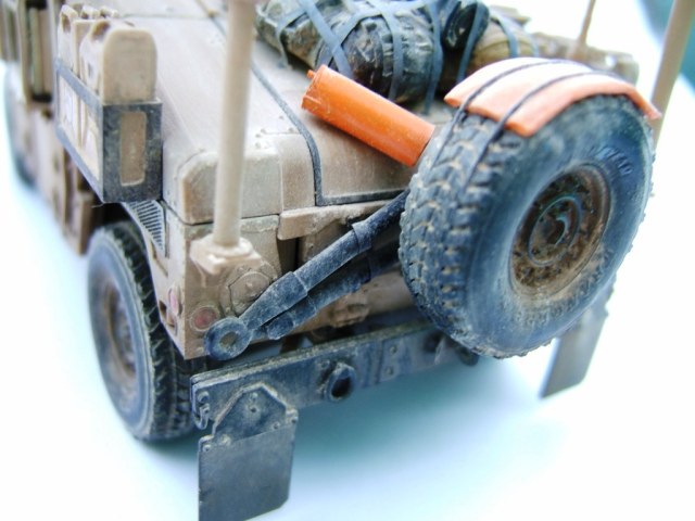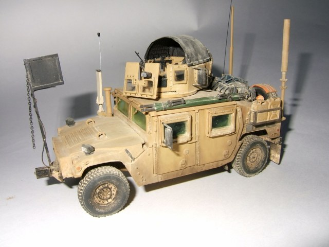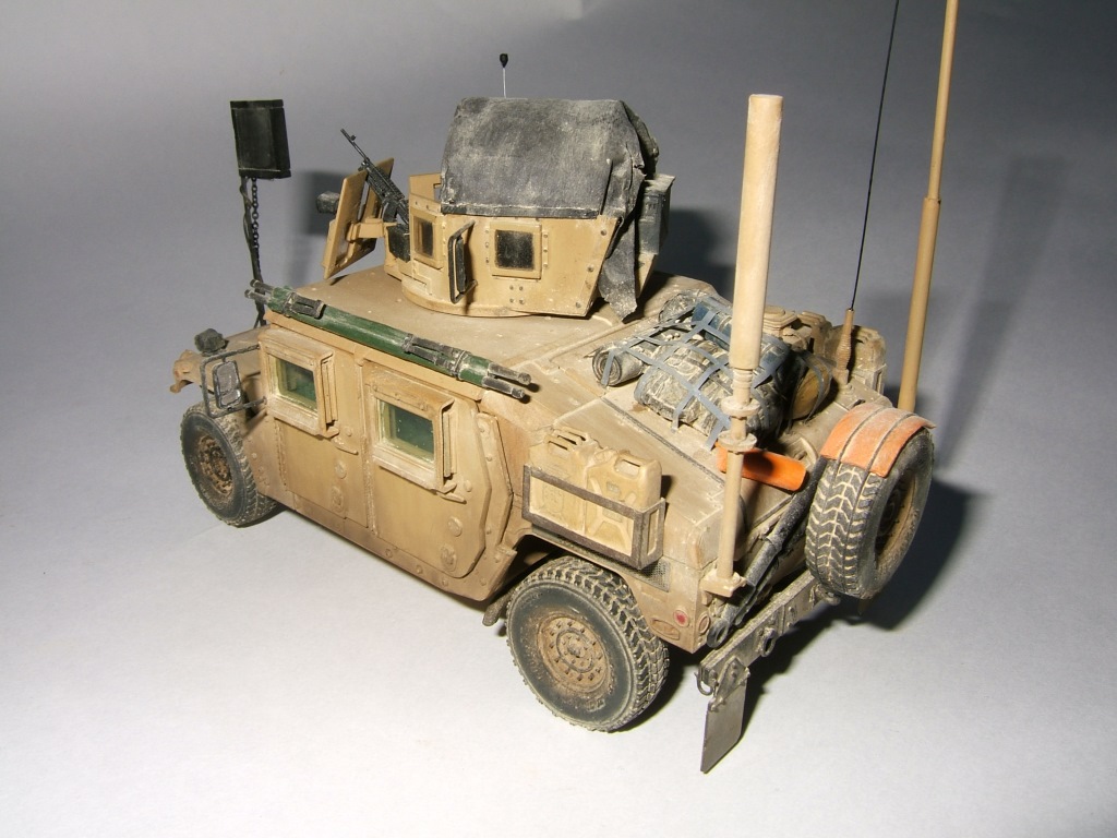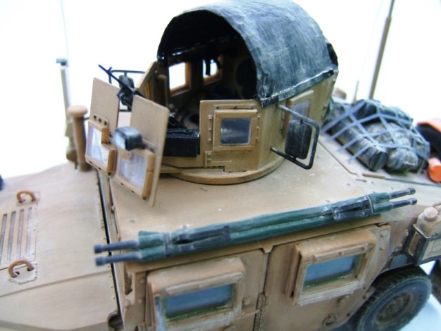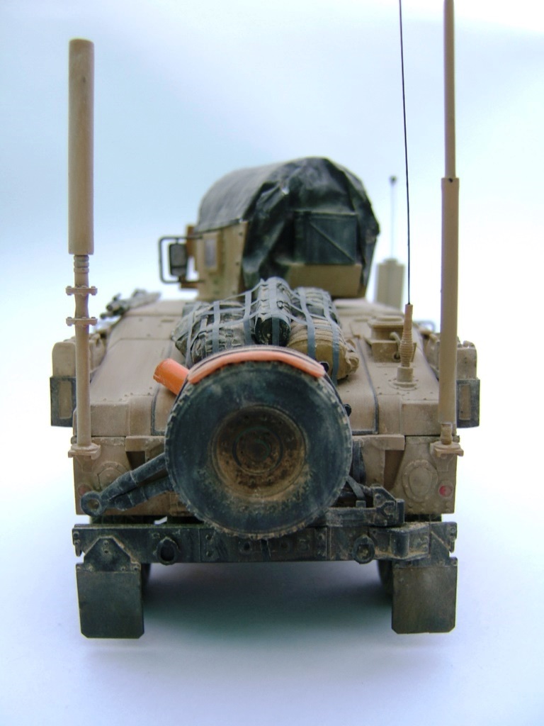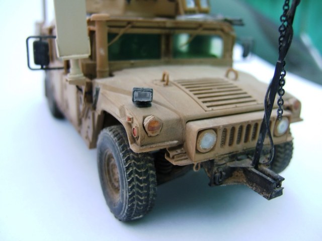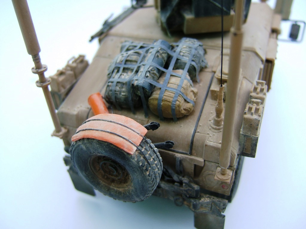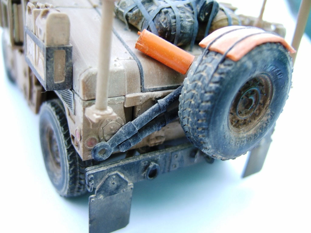 Ну наконец-то кто-то сделал Humvee с повернутыми под углом зеркалами!Да и рюкзаки обычно лепят просто так, кстати из чего делали сетку? Со стопсигналами действительно есть в интернете фото как с заглушками, так и просто задутыми краской. Единственное, что сразу бросилось в глаза - слишком длинная цепь на Rhino, зачем им такая?