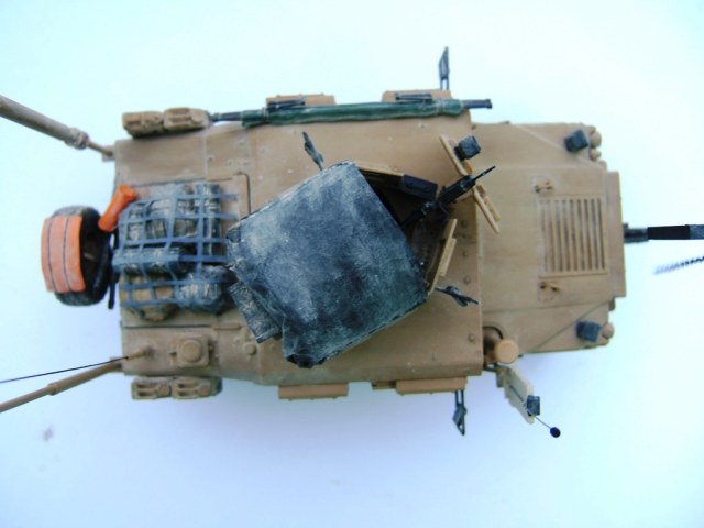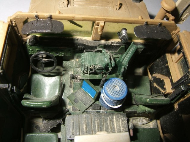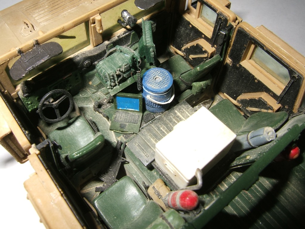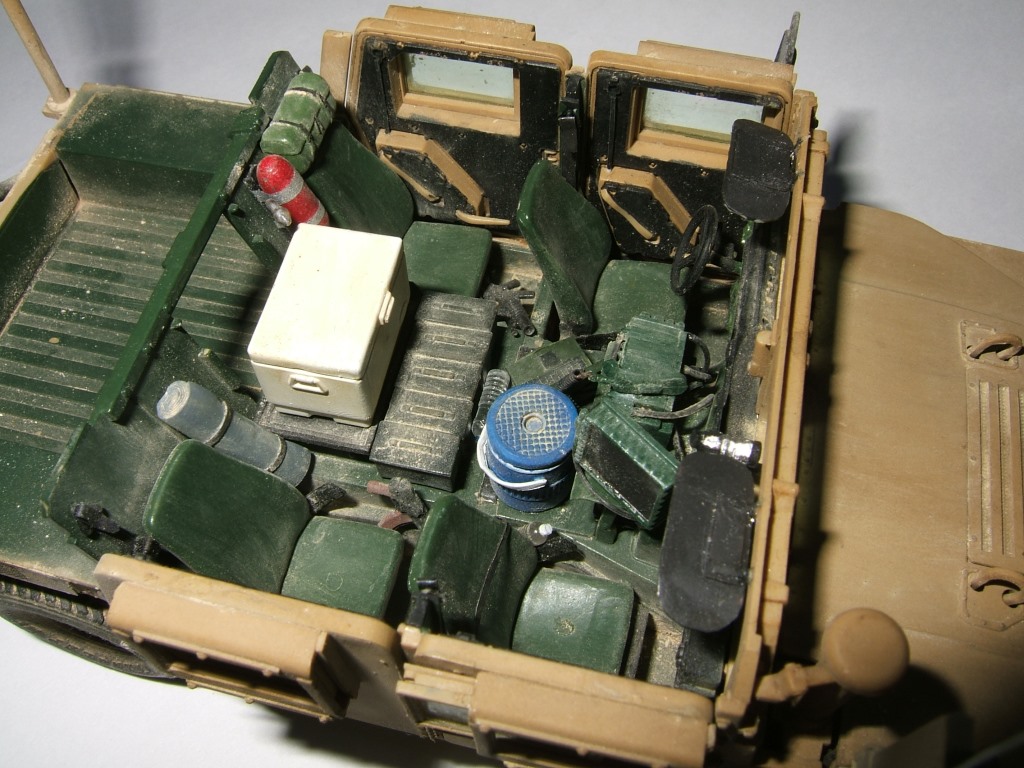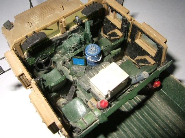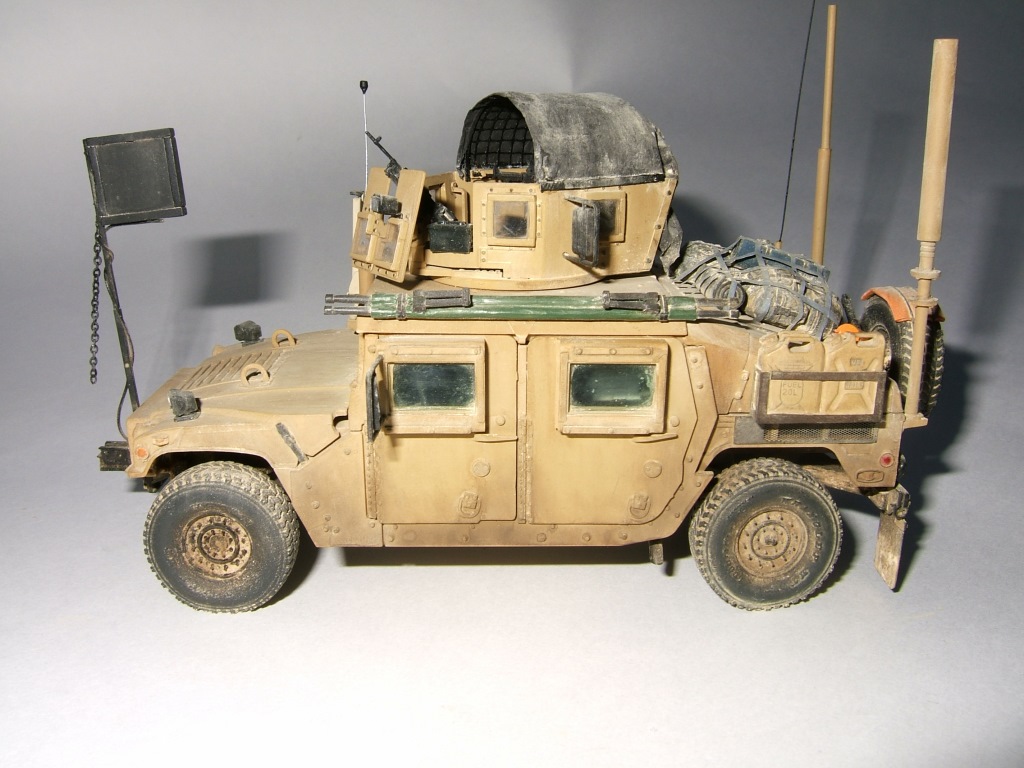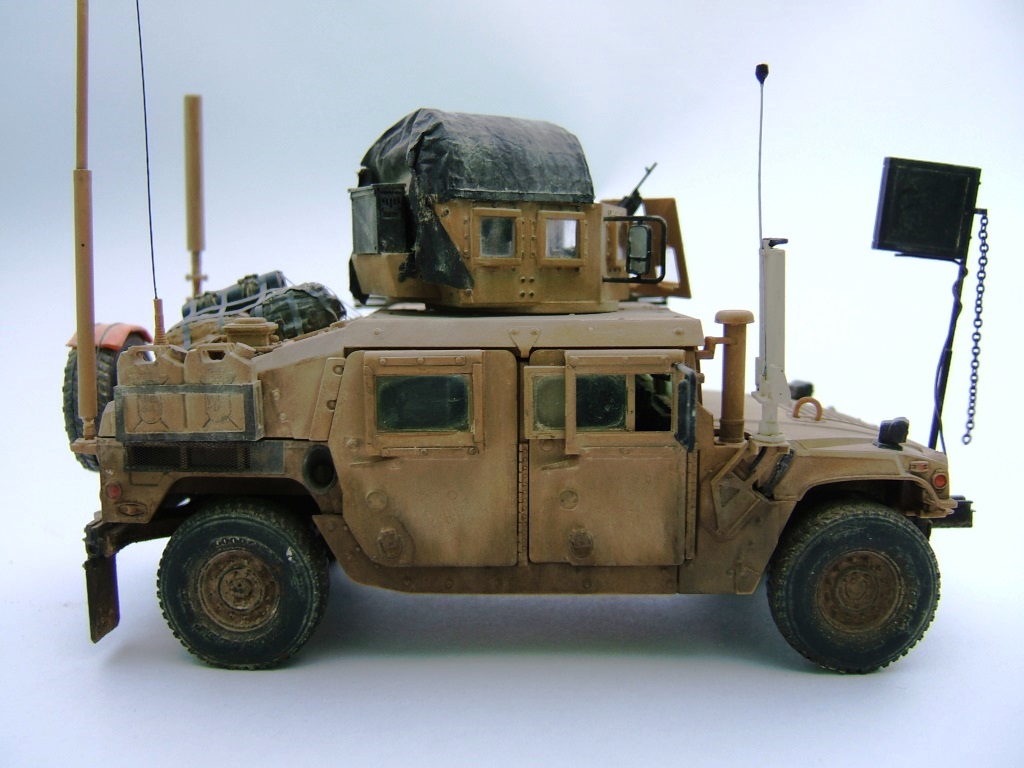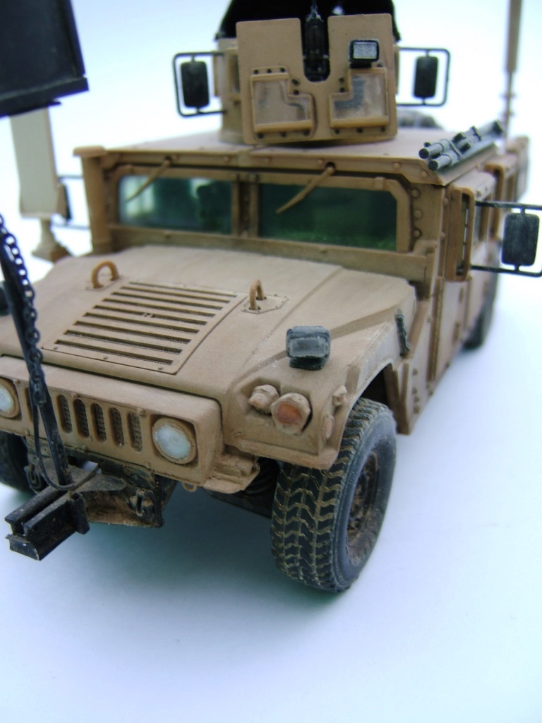 Ну наконец-то кто-то сделал Humvee с повернутыми под углом зеркалами!Да и рюкзаки обычно лепят просто так, кстати из чего делали сетку? Со стопсигналами действительно есть в интернете фото как с заглушками, так и просто задутыми краской. Единственное, что сразу бросилось в глаза - слишком длинная цепь на Rhino, зачем им такая?