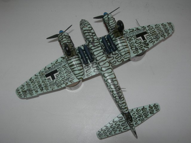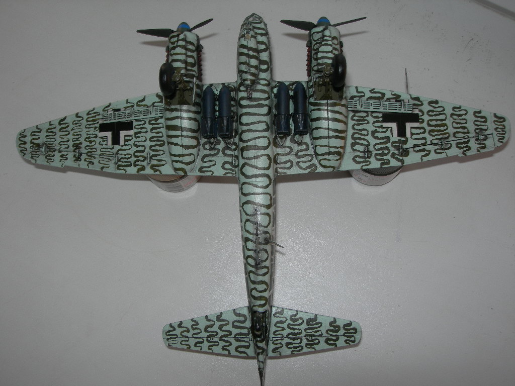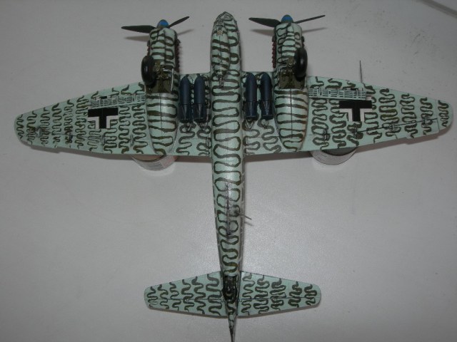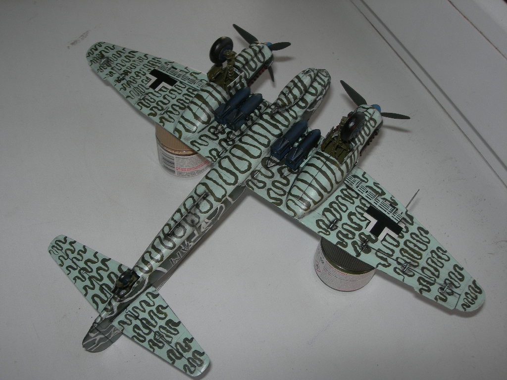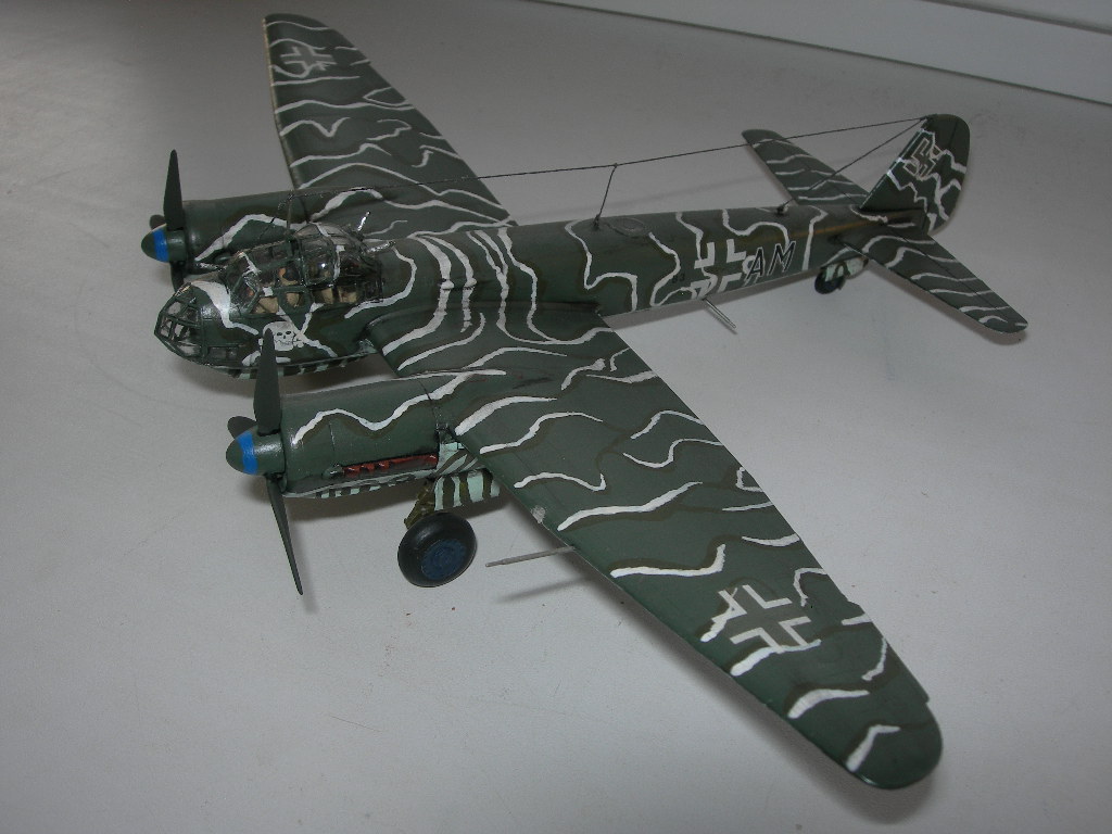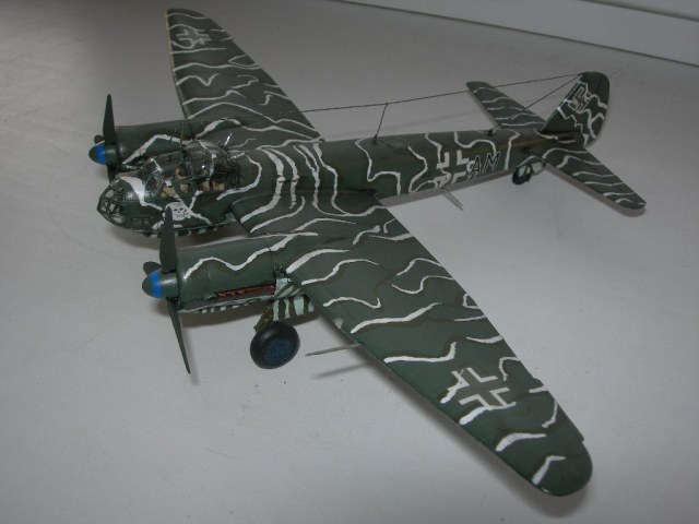 Диски колес никогда не были такими синими. Диски колес на Ю-88 были черными, когда свой строил, всю мат. часть изучил. Кистью лучше такие сложные рисунки не делать, без масок-трафаретов сложно аккуратно нанести. Я моттлы делал кистью, очень аккуратно, но наслушался.... нужны по любому слегка размытые края.