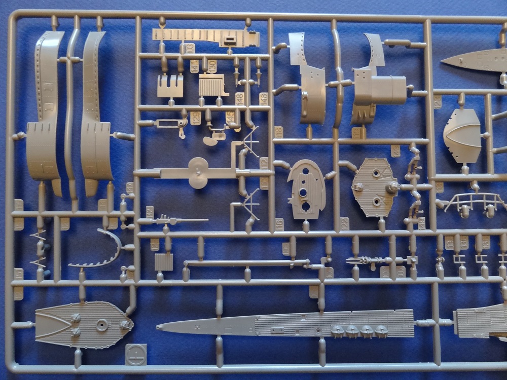 Все детали уложены всего на 2-ух литниках и 2 половинки корпуса самой лодки.