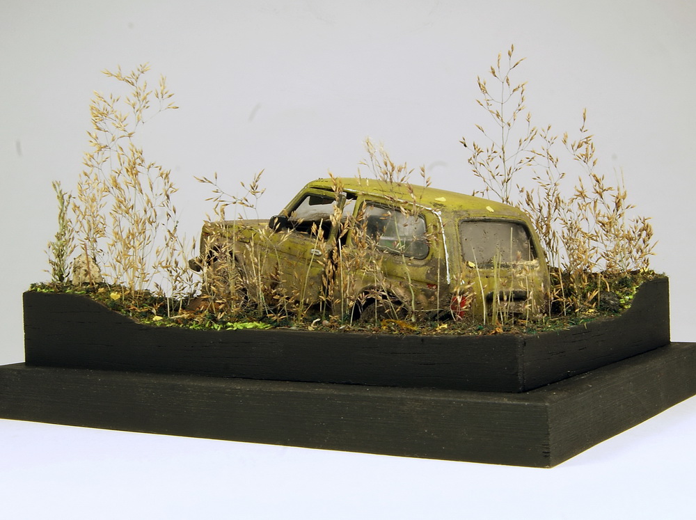Товарищи, слишком много Вы хотите от металлической игрушки и подставки размером 13х10. Да и как то не совсем корректно сравнивать ту же игрушку и сюжет с ее участием (из ни откуда) с реальными возможностями Нивы. Она именно так стоит в этой яме не потому что я не знаю что собой представляет это авто в своих возможностях, а только потому что я захотел ее поставить именно так. Нет следов "из" и "в"? может быть потому что стоит давно, может быть потому что упала туда с верху ... любая версия (даже самая абсурдная имеет место быть), ровно то же скажу за растительность, она "высажена" именно так как я захотел это сделать. Глядя на чужую работу, задавать вопросы почему она не выглядит так как видите ее Вы? Нет, вы видите ее такой как ее видит тот кто ее делал. Если я показался Вам не корректен то заранее прошу прощения, и спасибо что не оставили без внимания мою работу!