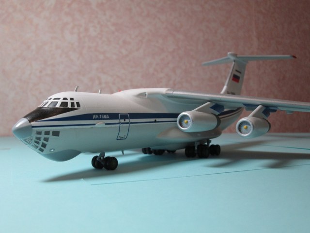 Доброго времени Уважаемые каропчане!!! Представляю Вашему вниманию модель самолета ИЛ-76 Трубача. Про кит не буду писать на форуме описание есть. Модель из коробки ничего сверх из доработок кроме БАНО посадочных фар и проблесковых маячков от эльф.Декали понравились за исключением Китайские друзья перепутали русскую букву (И) с английской буквой (N) в надписи марки самолета на декали (NЛ-76 МД) пришлось исправить. Про движки писать смысла нет ужос. Пачкать не стал модель в подарок будет красоваться на письменном столе по этому такая чистенькая.За фото прошу прощения на неделе попробую переснять если найду фотик нормальный. С Уважением Удачи !!!