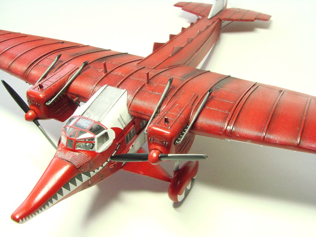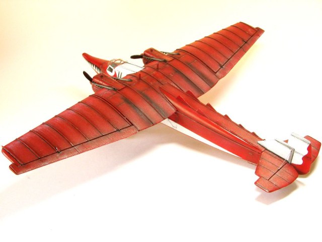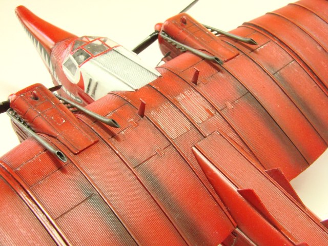 Загрунтована модель аэрографом краской AS-12 Tamiya, сцеженной из баллона. Окрашена также аэрографом эмалью: белая – Tamiya Х-2, красная – Mr.COLOR 327. После покрытия футурой переведены деки и выделена расшивка – акрил «Звезда». Далее полуматовый лак Mr.COLOR и пачканье маслом, а затем снова полуматовый лак Mr.COLOR.