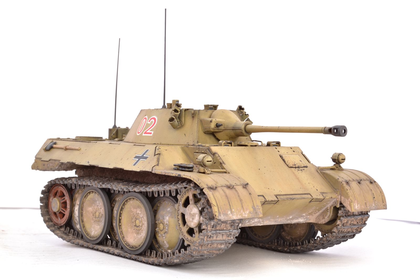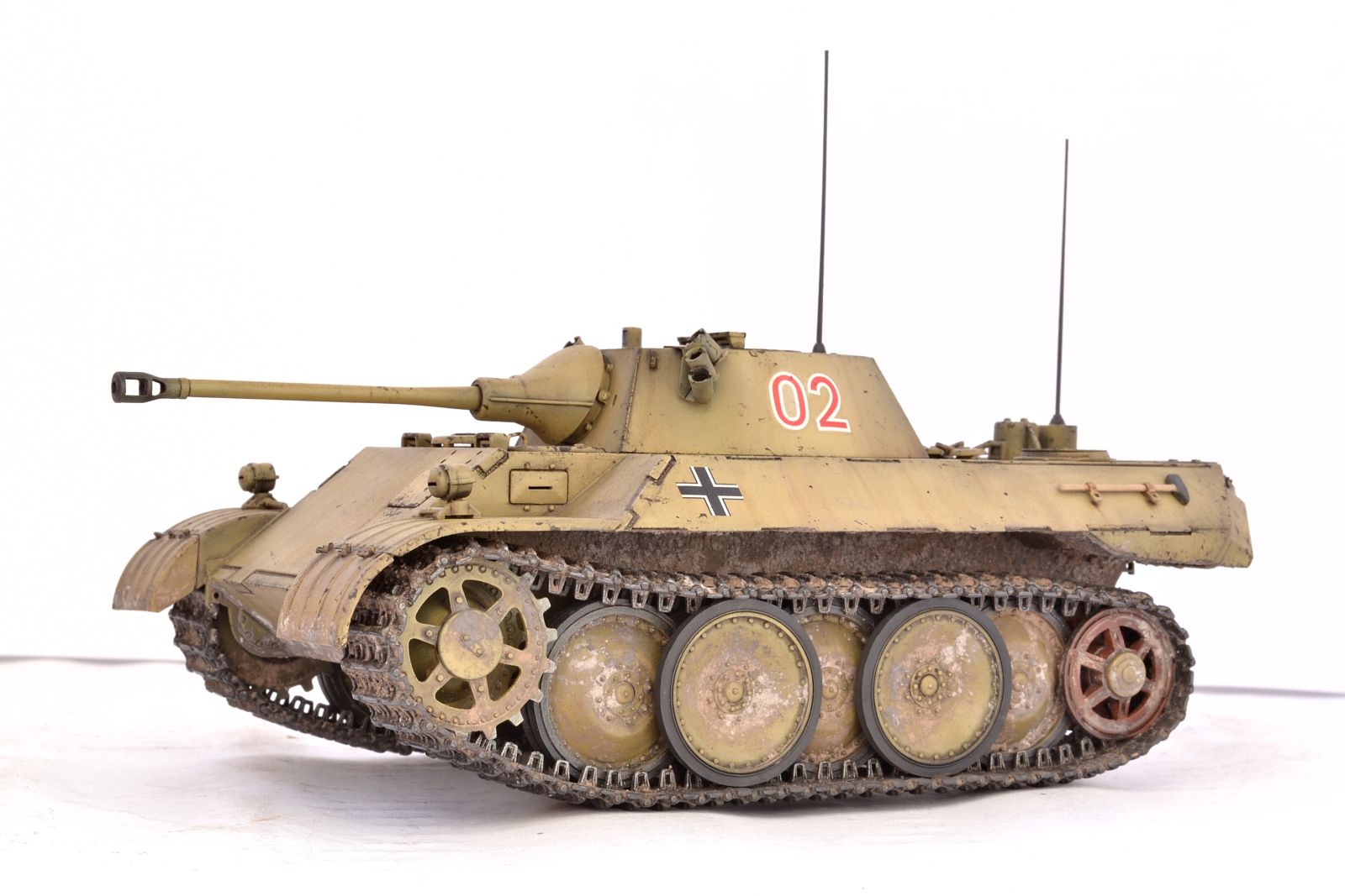 Интересный "Леопард",но уж если решили разнообразить его шанцем,то и торцовую часть молотка надо бы под дерево,как у топора ну и немного смутил цвет катков на ленивце и слишком контрастная смывка,а в остальном очень зрелищно,на полке очень даже будет...