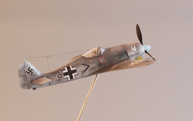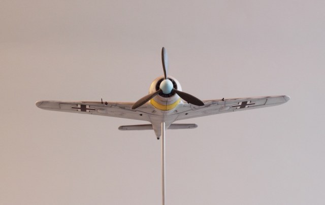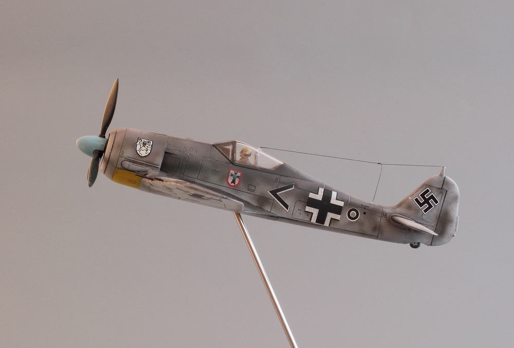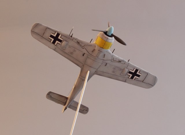 Использовался уже довольно известный набор от "Звезды", вариант окраски выбран изкоробочный: 4-я эскадрилья 1-ой истребительной эскадры, Мёнхенгладбах, осень 1942 г.