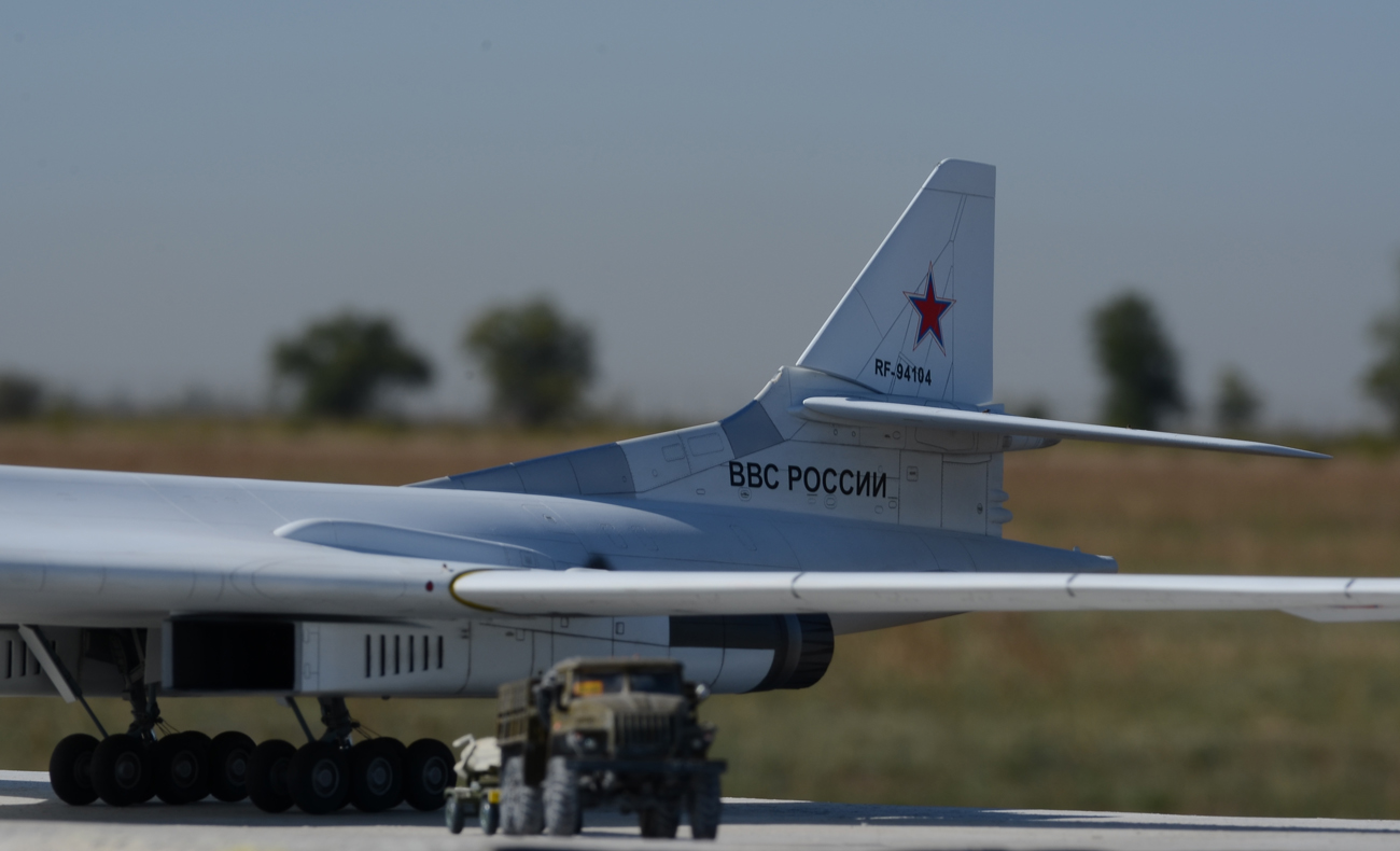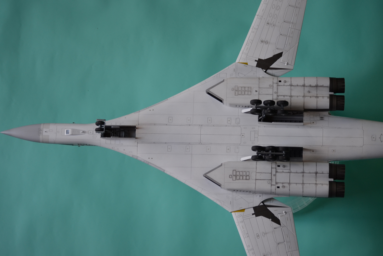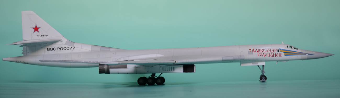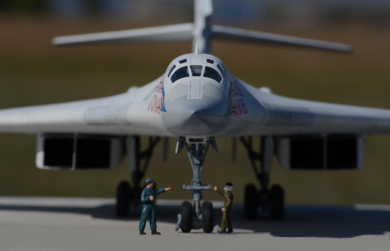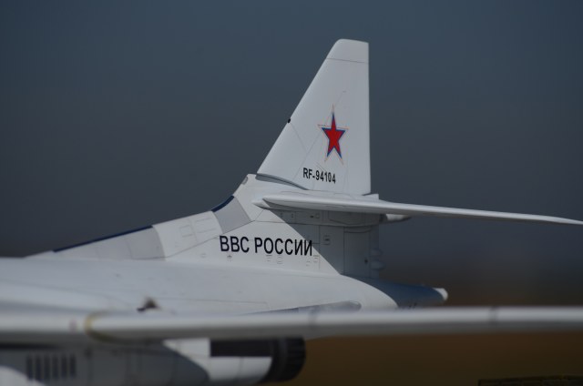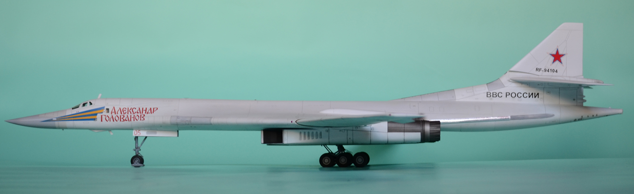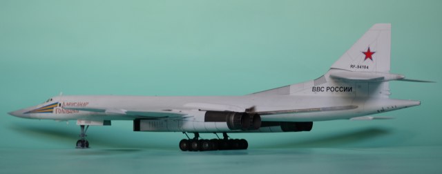 Привет, любителям моделей! Вот доделал модель для знакомого военного, который служит на энгельсской авиабазе. Сначала договорились, что просто красим и все, но я все-таки выпендрился и сделал некоторые доработки: сопла из жестянки, огни БАНО, трубки на стойках. К сожалению я забыл про зеркала возле аварийных люков штурманов. Я их конечно доделаю, но фотогра-ть на природу уже не поеду. Работа длилась долго, много-чего переделывал. Например, эксперимент с нов. краской из баллона закончился печально- пластик сильно "съело". Когда выбрали борт №5, он был чистый и аккуратный, а в наст. время он изрядно потрепан (прикрепил фото наст. борта, сделанное 16 сентября).Из-за того, что у меня объектив 55-200мм, сложно было сфотать самолет (вид сверху и вид снизу) целиком, поэтому пришлось частями.