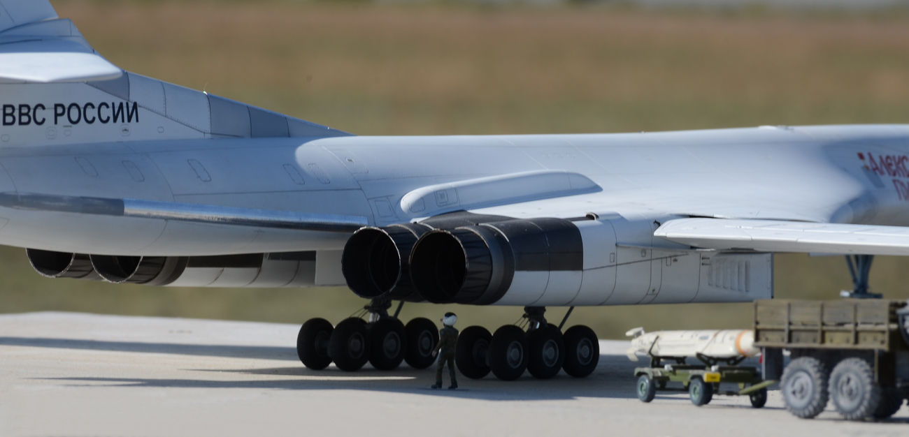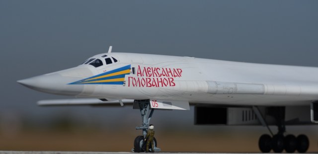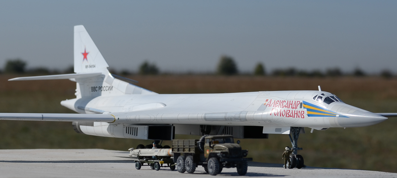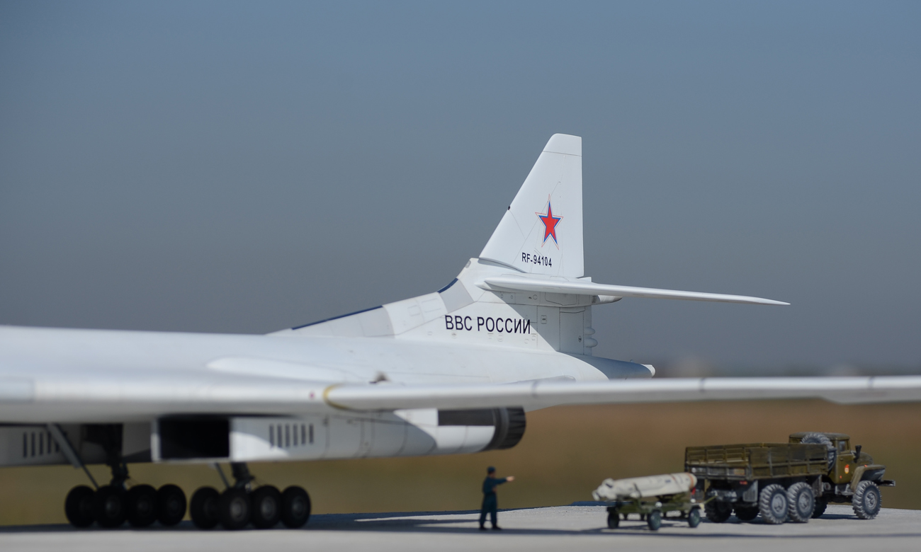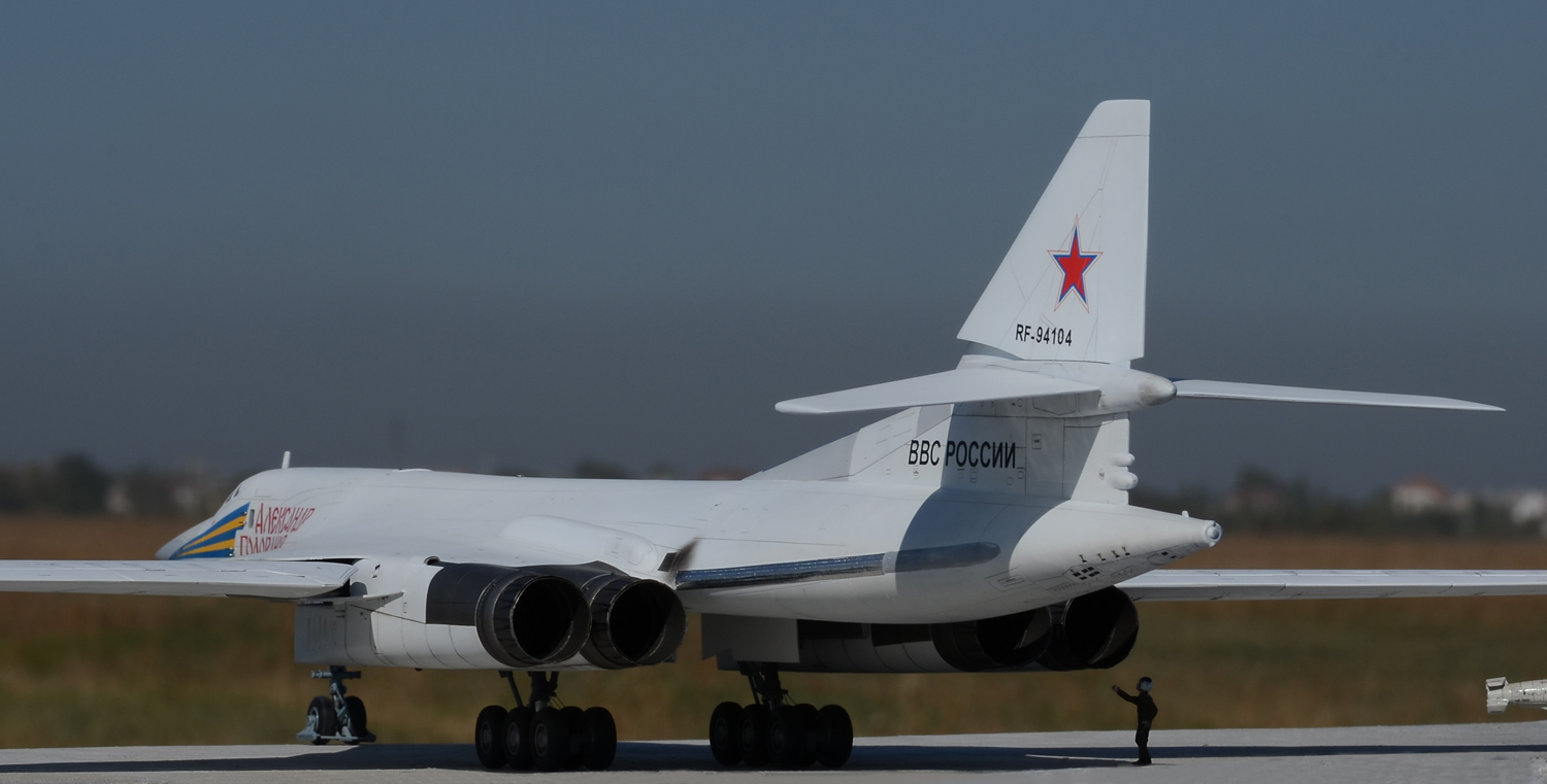 Привет, любителям моделей! Вот доделал модель для знакомого военного, который служит на энгельсской авиабазе. Сначала договорились, что просто красим и все, но я все-таки выпендрился и сделал некоторые доработки: сопла из жестянки, огни БАНО, трубки на стойках. К сожалению я забыл про зеркала возле аварийных люков штурманов. Я их конечно доделаю, но фотогра-ть на природу уже не поеду. Работа длилась долго, много-чего переделывал. Например, эксперимент с нов. краской из баллона закончился печально- пластик сильно "съело". Когда выбрали борт №5, он был чистый и аккуратный, а в наст. время он изрядно потрепан (прикрепил фото наст. борта, сделанное 16 сентября).Из-за того, что у меня объектив 55-200мм, сложно было сфотать самолет (вид сверху и вид снизу) целиком, поэтому пришлось частями.