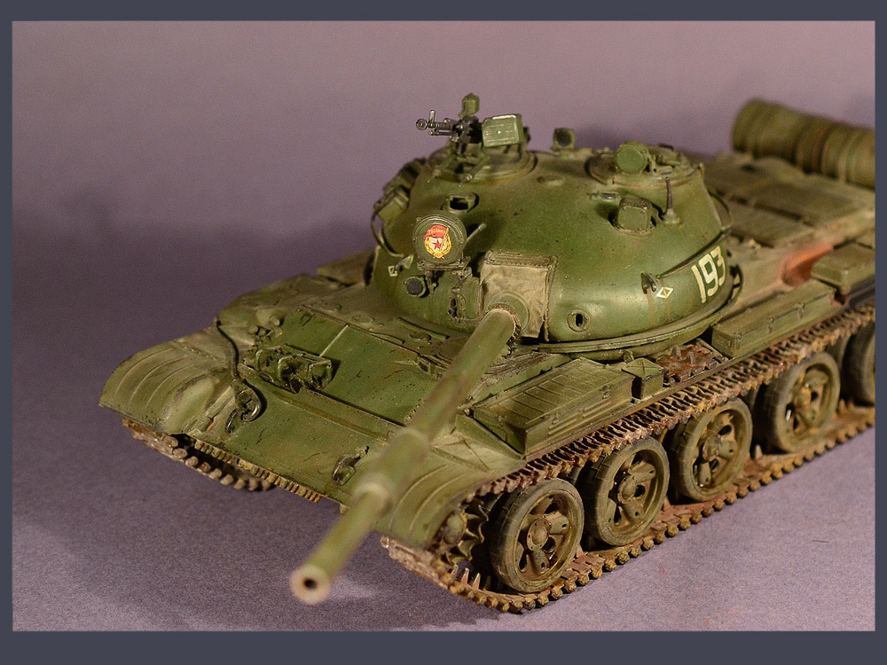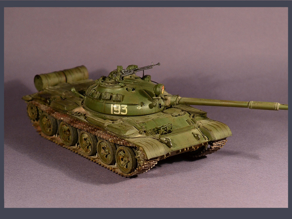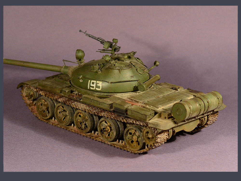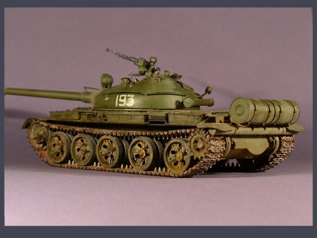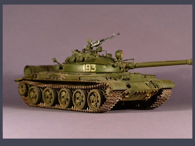 Наша модель показывает обобщенный образ советского танка Т-62, с бортовым номером 193 и гвардейской эмблемой на башне.