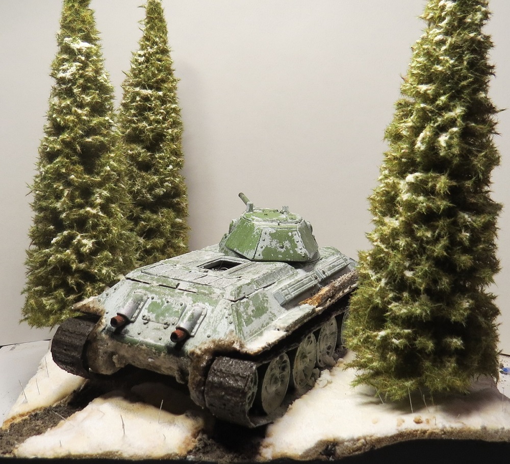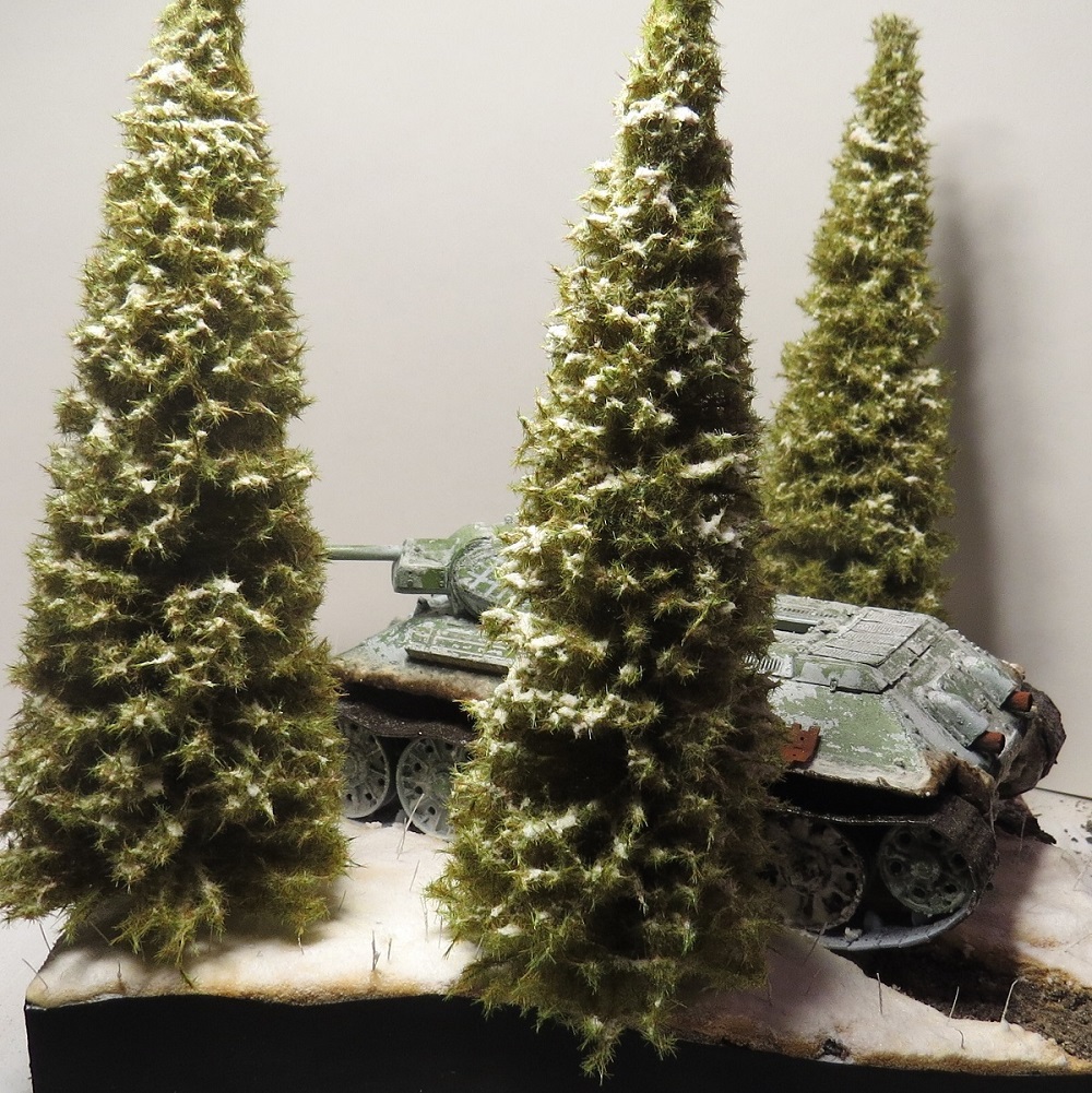Диорамка делалась для школы . Опыта в покраске бронетехники нету(по сути первый танк), что получилось то получилось. Но лично меня результат более менее удовлетворил :) Ёлочки самодельные из проволоки, оклеены травой для ж.д. макетов.