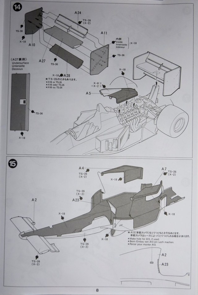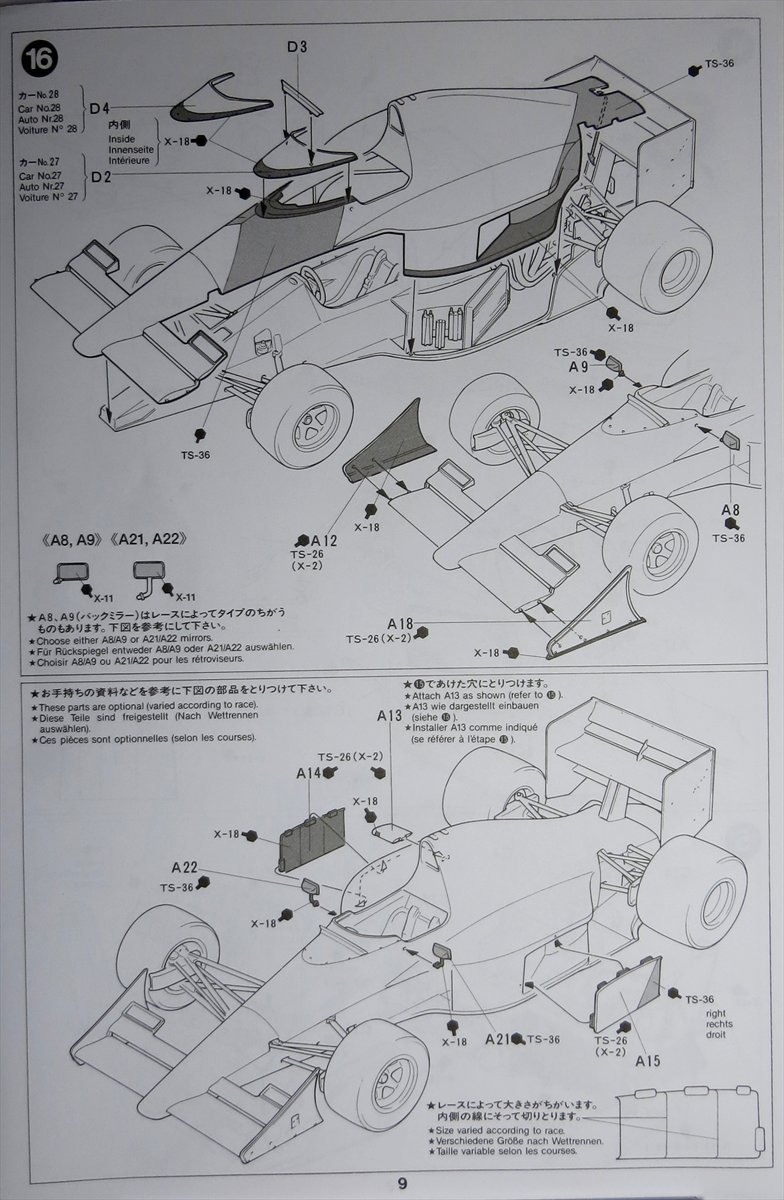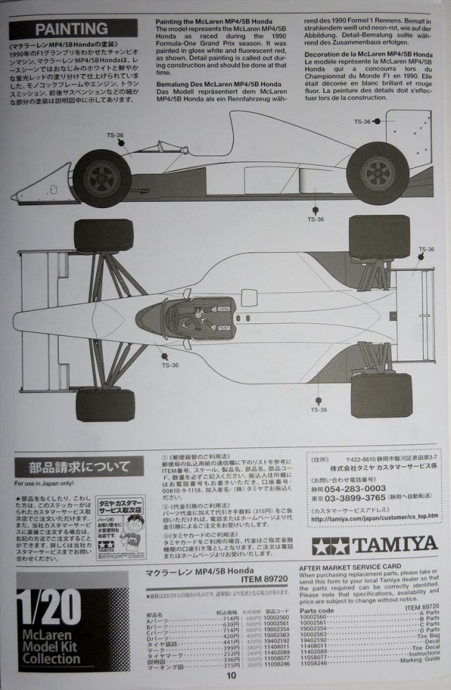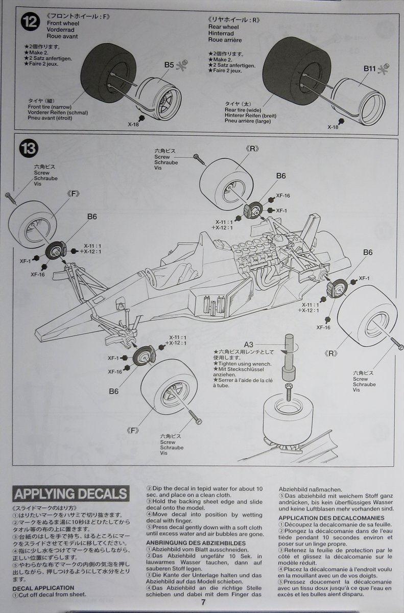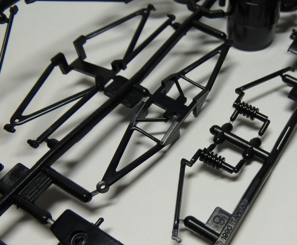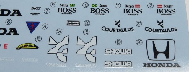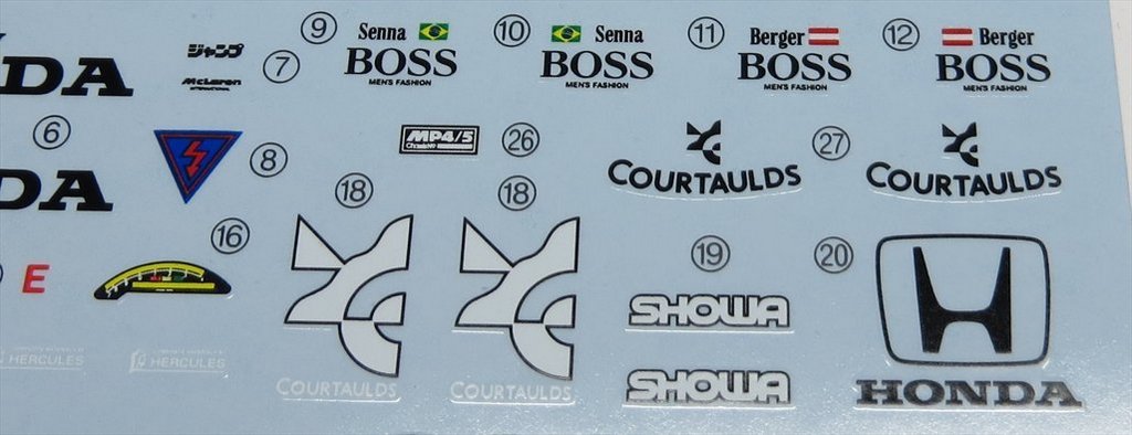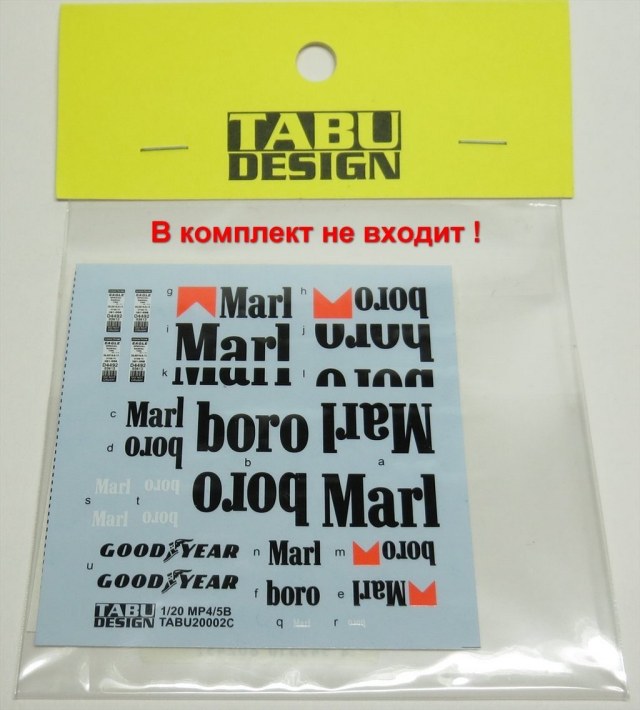 Прозрачные детали, прозрачные) Декаль, как всегда у Tamiya, хорошего качества с чётко пропечатанными надписями, даже самыми мелкими. Вот только бестолковая, отсутствуют спонсоры Shell и Marlboro, ну если причина отсутствия Marlboro понятна, то почему отсутствует Shell…? Поэтому была куплена дополнительная табачная декаль от TabuDesign, на которой тоже отсутствует Shell, это я понадеялся на тамиевскую декаль… Короче если надумаете брать подобный набор в чёрной коробке, докупайте к нему сразу декаль со всеми спонсорами, потому что вы не угадаете какой из спонсоров будет отсутствовать. С этой декалью я лоханулся, пришлось заказывать ещё одну деку со всеми спонсорами, надеюсь понятно объяснил.