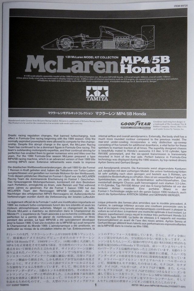 Сегодня подготовил обзор на наборчик Tamiya ( #: 89720 ) McLaren Honda MP4/5B.