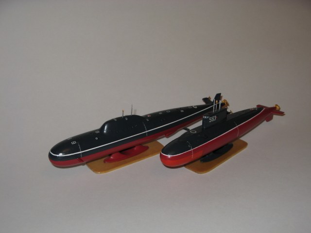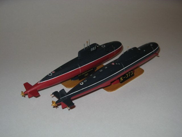 Я так до сих пор и не знаю кто автор отливок – Моделист или Восточный экспресс. Они пакуют одни и те же модели, в 400-м масштабе (в фильтрах не было) – лодки проекта 705 и «Варшавянки». Собственно парой я эти лодки и купил, но если «Лира» получилась вполне похожа на себя, то Варшавянка, выполненная мной в индийском варианте похожа на оригинал как Шкода на Запорожец, и по качеству исполнения отвратительна. Собственно модель получилась такая же, поэтому отдельно на «Каропку» я ее не выкладывал. Стыдно L.