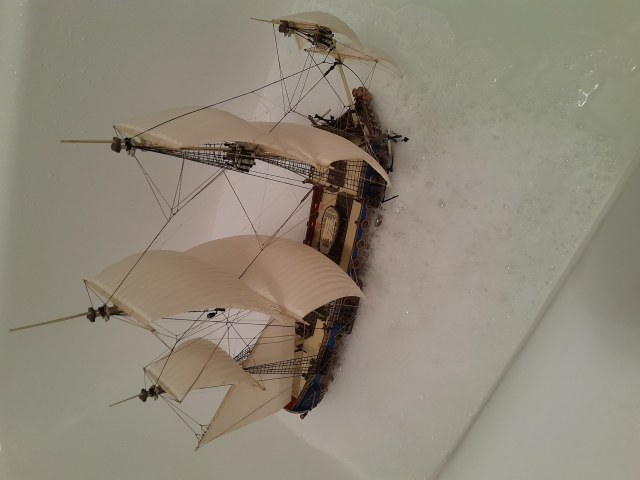 Алексей, не ошибаетесь. Именно ГОТО должно записывать. Дело в том, что описание модели делал в "ворде" а его функция правописания не зает такого слова ( нужно обучать). Сейчас исправлю. К сожалению модель погибла от пыли и от рассыхания... При каждой попытке слегка сдуть пыль , отваливается мелкая деталюшка. Эта модель ( как и другие парусники ) осталась у моих родителей и я попросил не протирать сних пыль. Вот её состояние и похоже на состояние других памятников "находящихся под охраной государства". По хорошему, надо снимать паруса и весь такелаж. Но после очень трудно будет устоять от соблазна что то переделать по новой технологии. А это будет уже не реставрация а новодел.