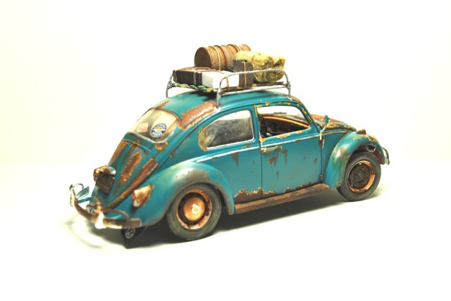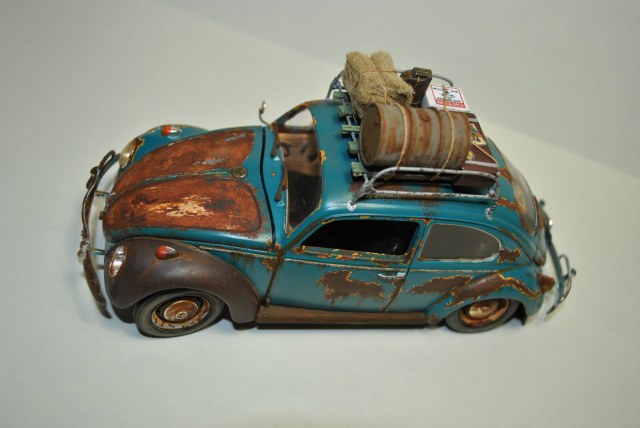 Данное авто давно стояло на полке в красном цвете под лаком,но наткнувшись на фотки в интернете ржавых машин причем специально, так сказать стиль такой. Как я выяснил для этого даже краска специальная есть самым популярным для этого стиля оказался как раз таки WV.Поискав тут на сайте нечто похожее тоже есть но все же я решил сделать себе на полку Rusty style.