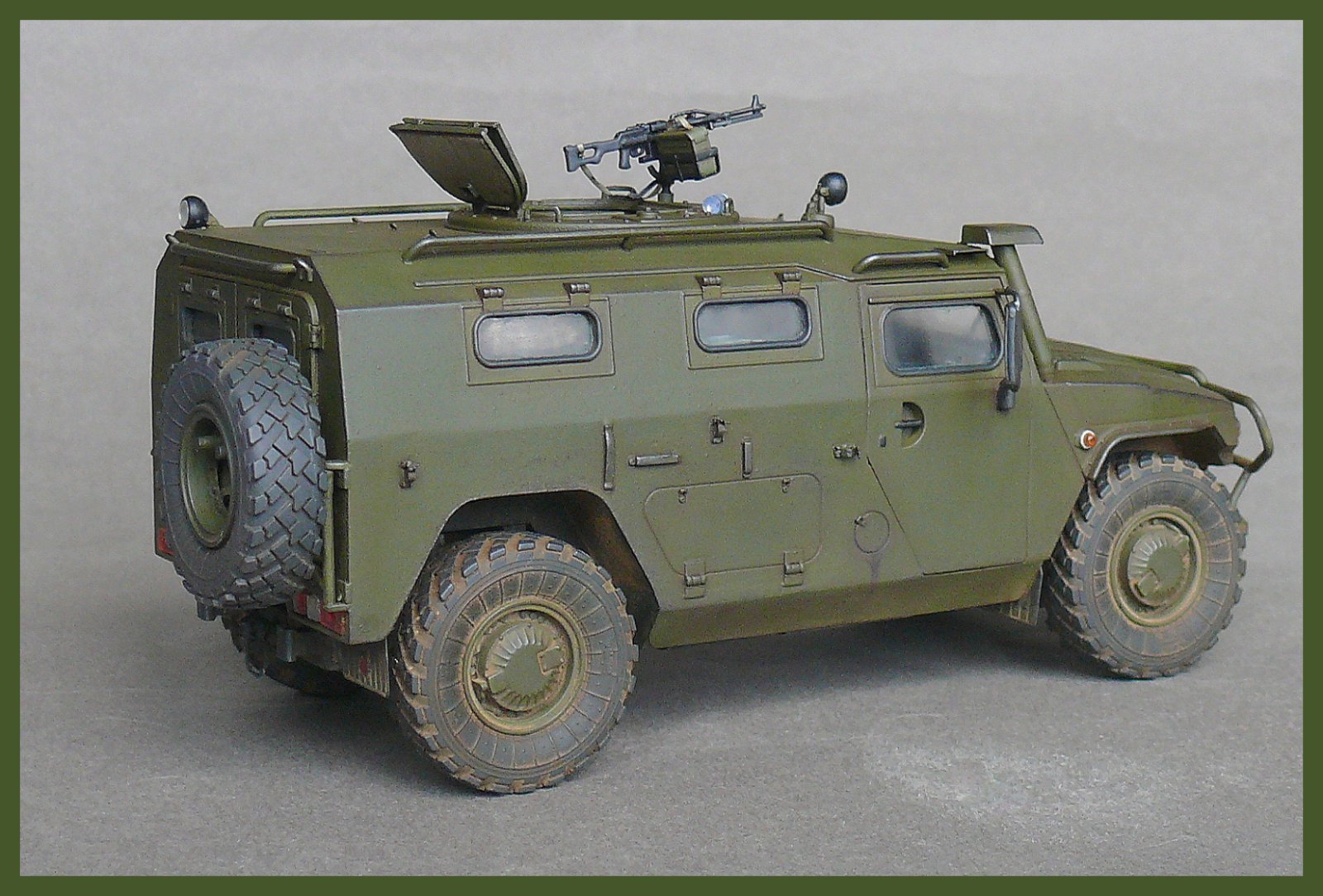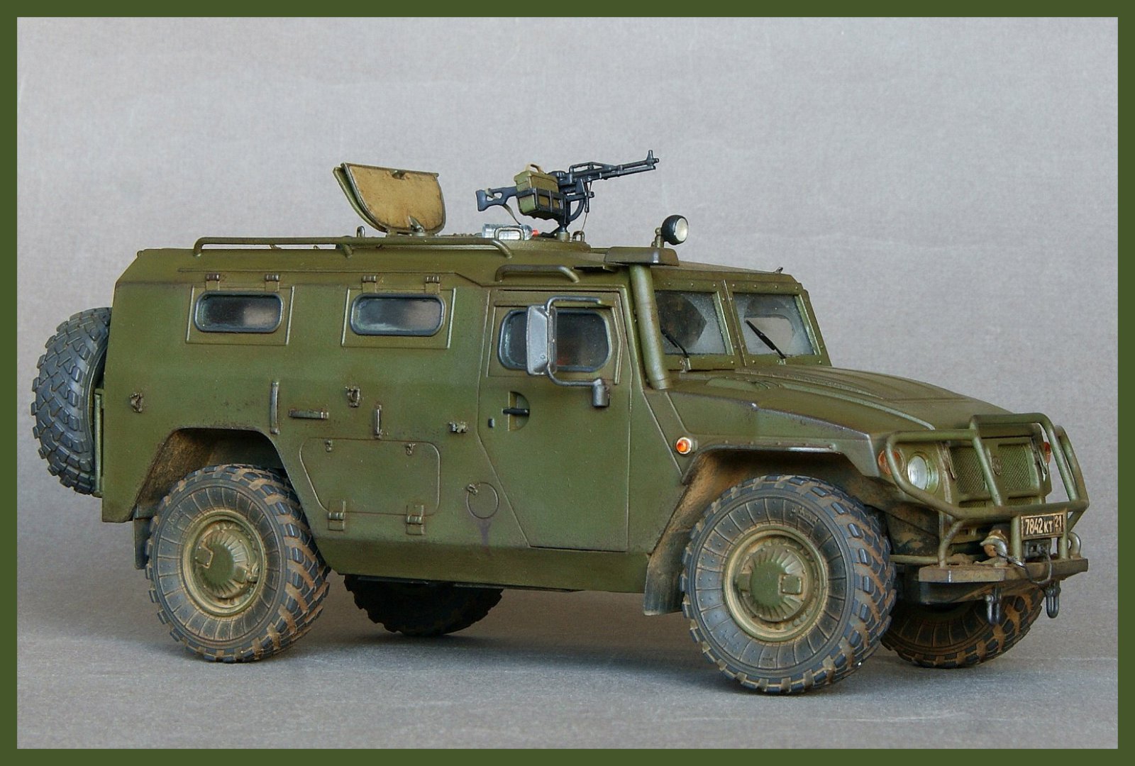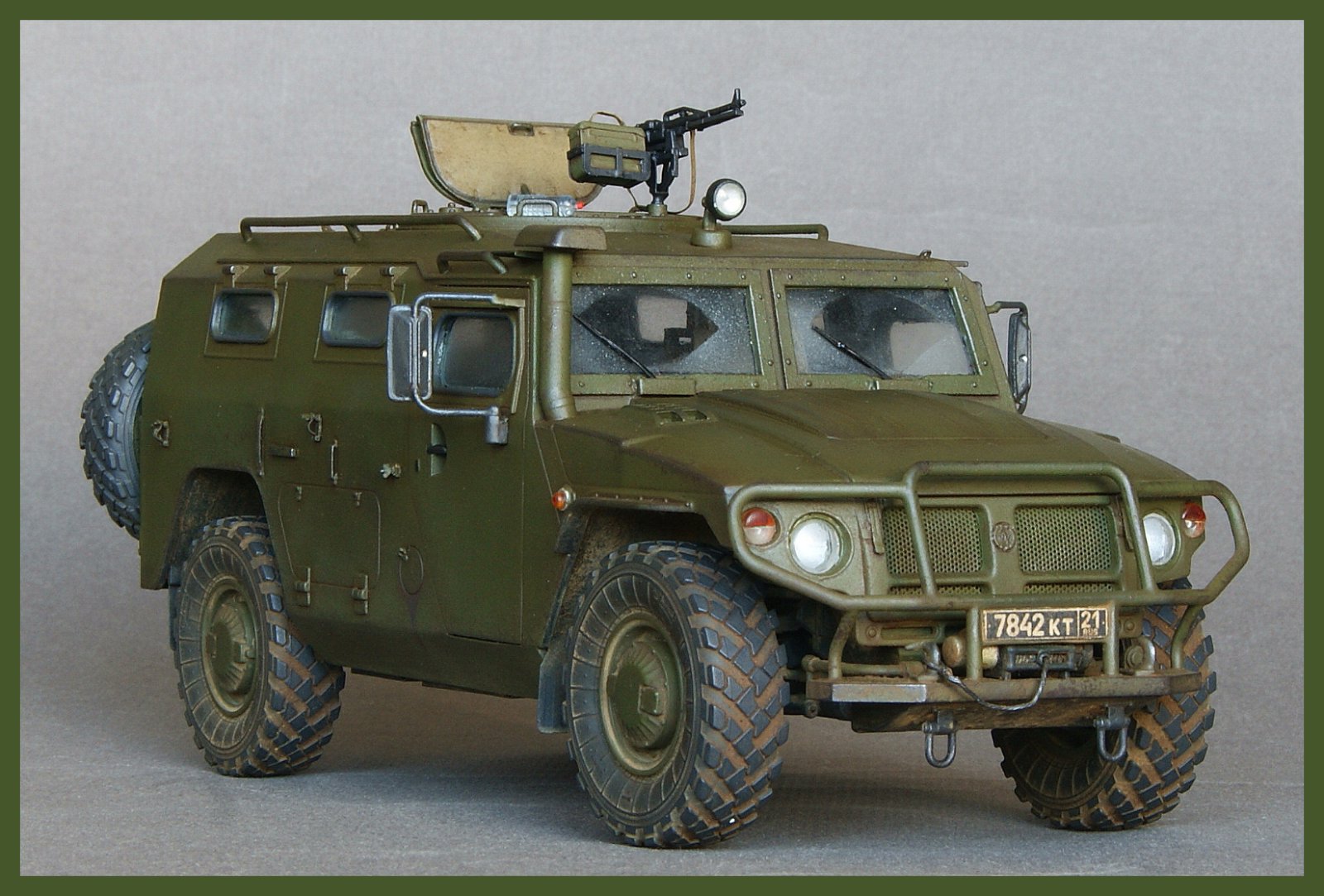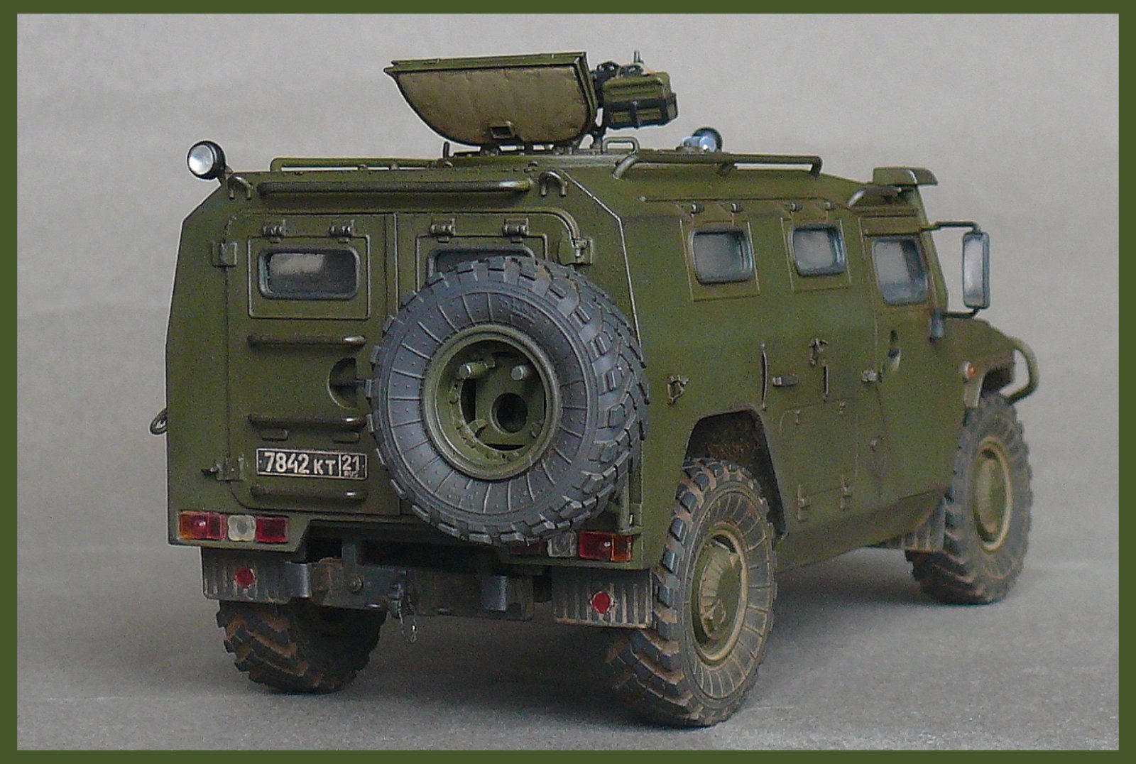 Дмитрий, отличный Тигр. Понравилось мелочёвка для крепления шанцевого инст.-а.Проработка нижней части авто и в целом: внимание и проработка мелочей.Да и фото много, это хорошо!Поздравляю и привет от соседа по "выставочной полки".