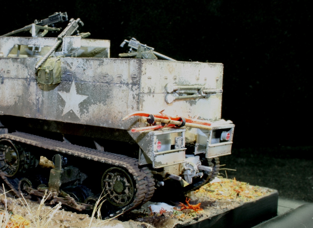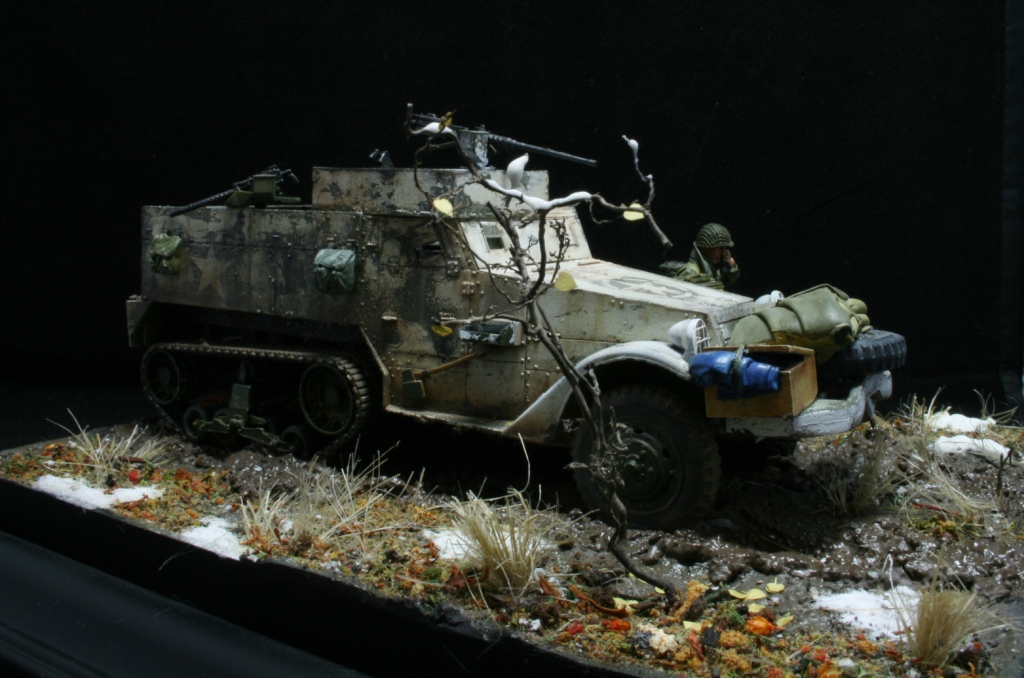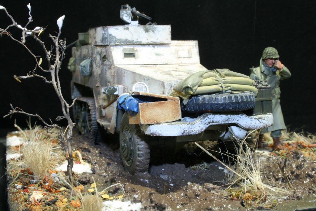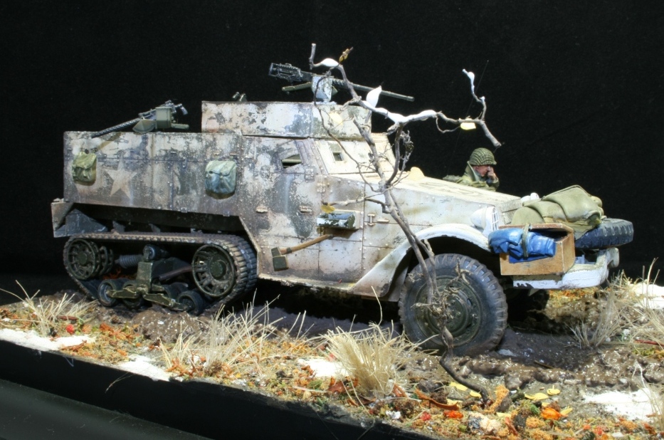 Борис, приятная работа, а с учётом обсуждений в последних постах и Вашего позитивного настроя на комментарии всё дополнительно "расставляется по (нужным) полочкам". В отношении возможных доработок - конечно, ходовую полугусеничника дополнительно грязнить бы нужно, полы шинели офицера тоже... Да посоветовали уж, вполне разумно и доброжелательно. В отношении того, что офицер "одинок" - так дайте ему "воки-токи", и обойдётся без радиста. И ещё - советую найти и посмотреть старый, черно-белый ещё, американский фильм "Поле боя" - как раз Бастонь со всеми её кошмарами.