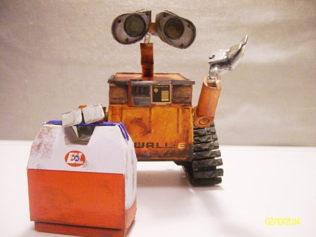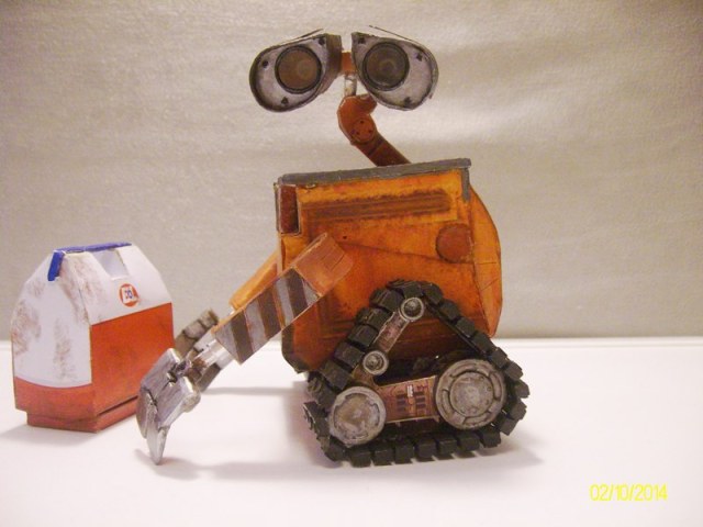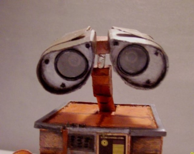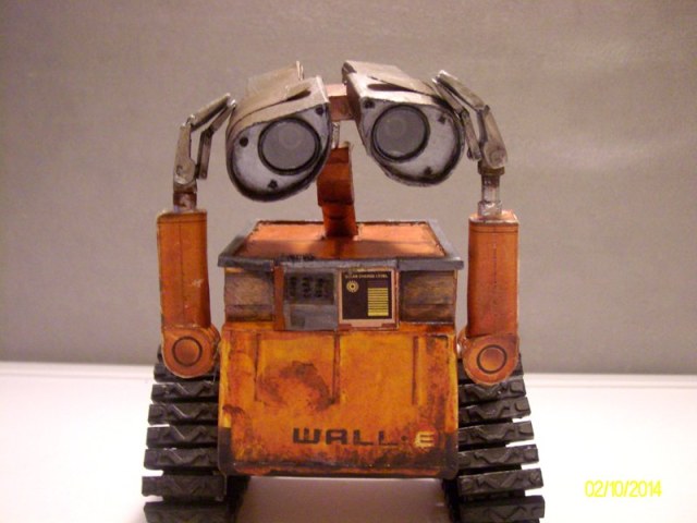 Вот выставляю свою модель робота Валл-и - увидел здесь такую же и захотелось сделать самому, пока сборка остальных моих работ зависла на стадии покраски(просто боюсь начинать красить, дабы чего нибудь не испортить..) . Ну а Валл-и делался из бумаги по выкройкам с папер-реплики.ком. Распечатывал сразу в цвете. Правда в процессе руки(мои) не утерпели и пришлось делать катки и гусеницы из вспененного пластика(это тот который в рекламе для табличек используют), а затем черед и глаз с руками пришел. Глаза Валл-ли делал из шприца и пластика, руки(манипуляторы) из модельного пластика попавшихся под руку пластиковых трубочек.