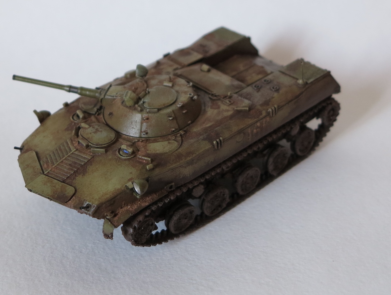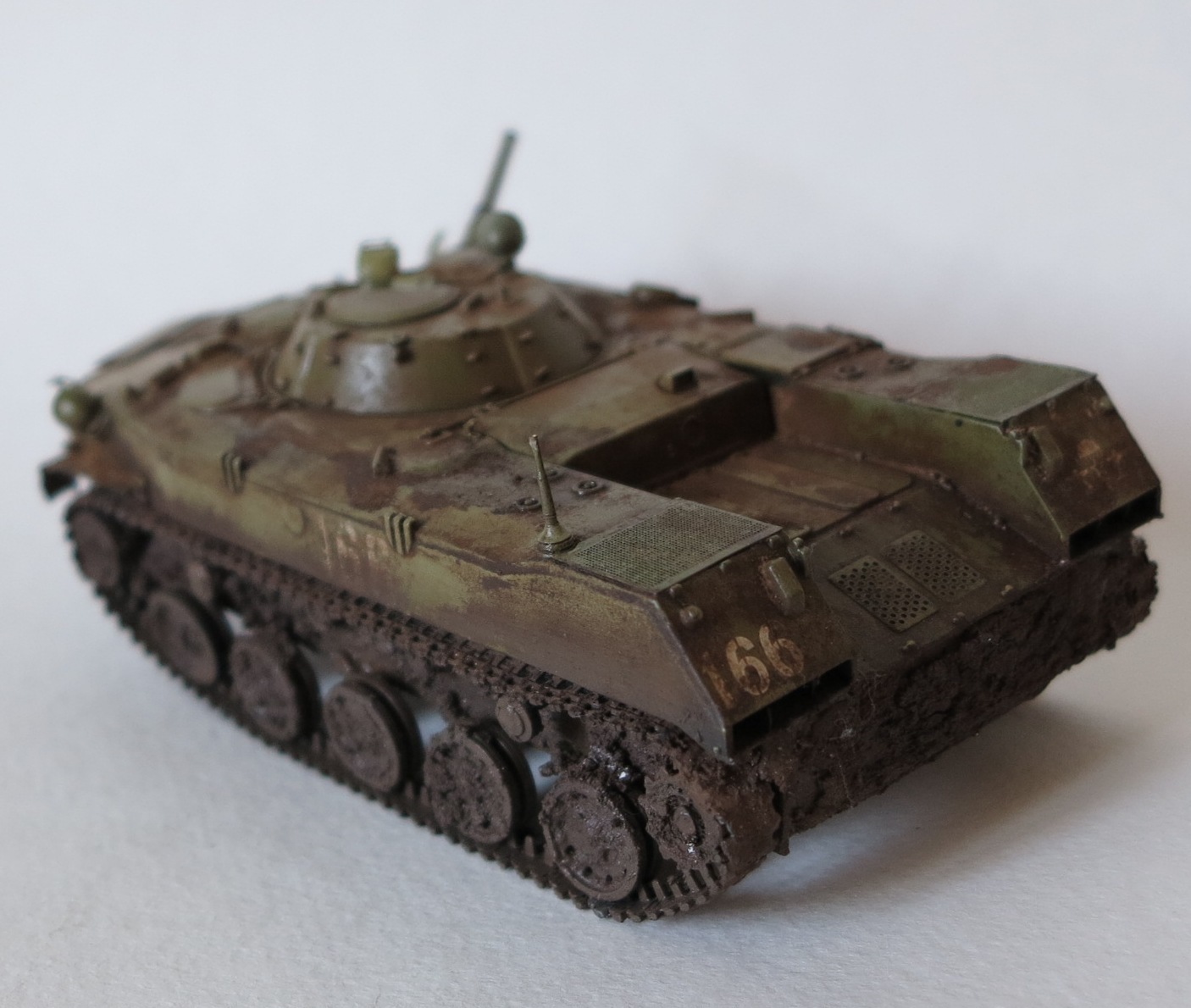 Бмд-1 скифа, о качестве скифа наслышаны все,после покраски всплыли косяки с некачественным шпаклеванием,исправлять не стал,так как в тот момент ооочень сильно хотел десантировать её с 16 этажа без парашютной систмы. Красил акрилами АК м валехо , химия МиГ. грязь самопал. Типа Чечня зима 1995