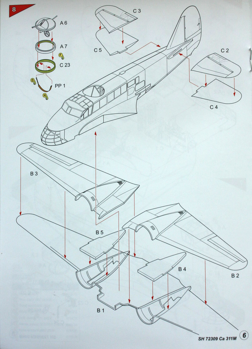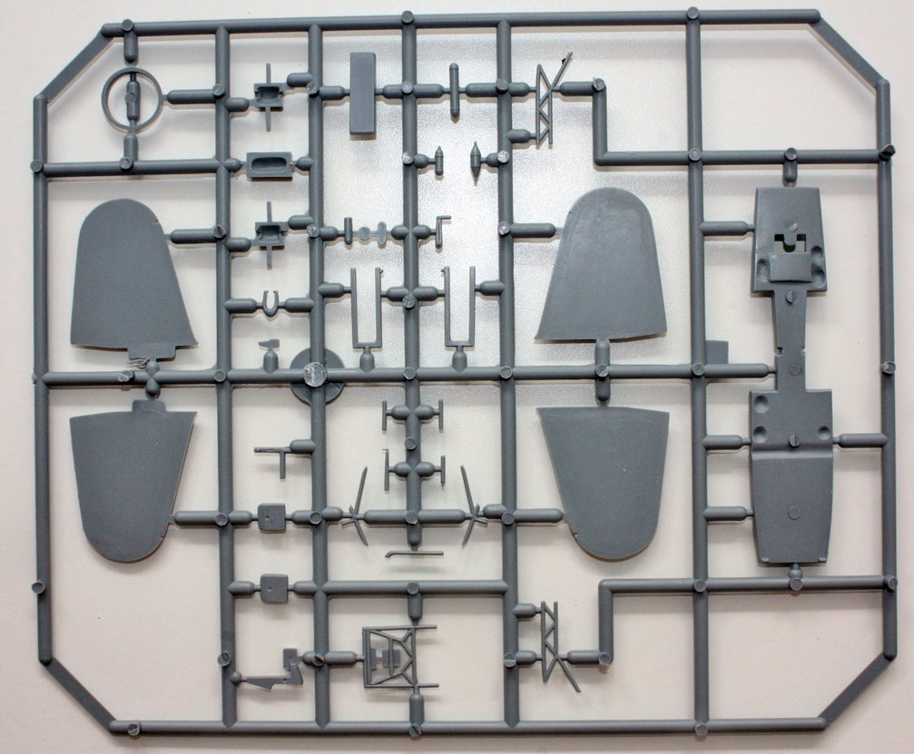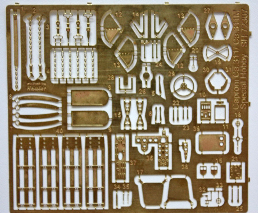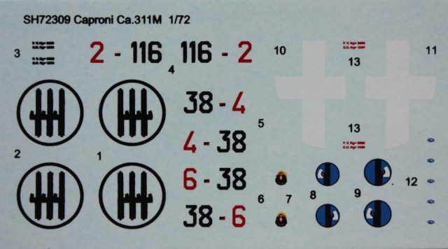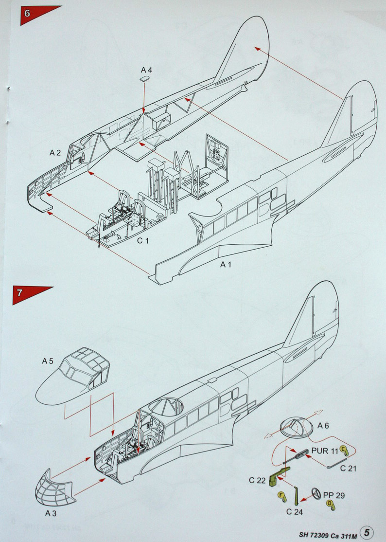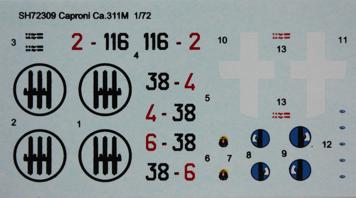 Всё видно на фотографиях, поэтому в описании - только маленькие пояснения. Отличия в литниках от другой модификации Caproni Са.311 - только в том, что в прозрачной рамке с деталями пролита соответствующая модификации носовая часть Са.311М, а неиспользуемая часть обтекаемого фонаря Са.311 при литье заглушена