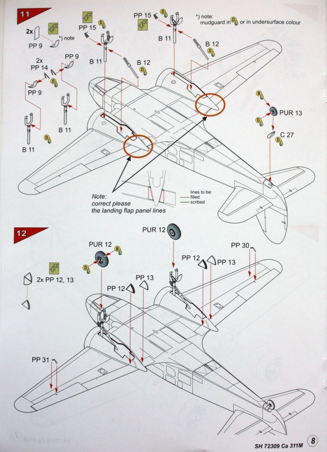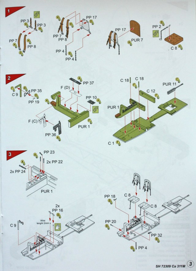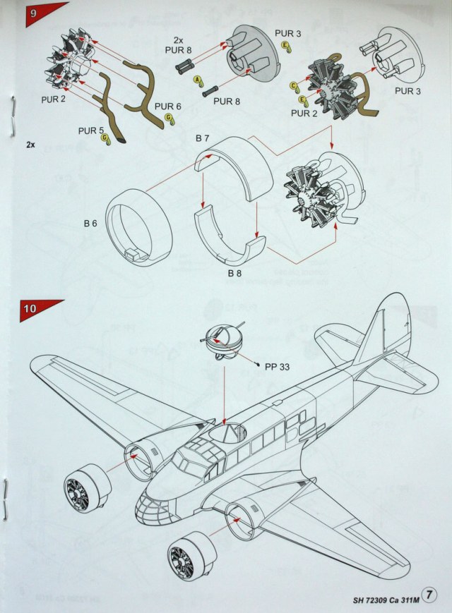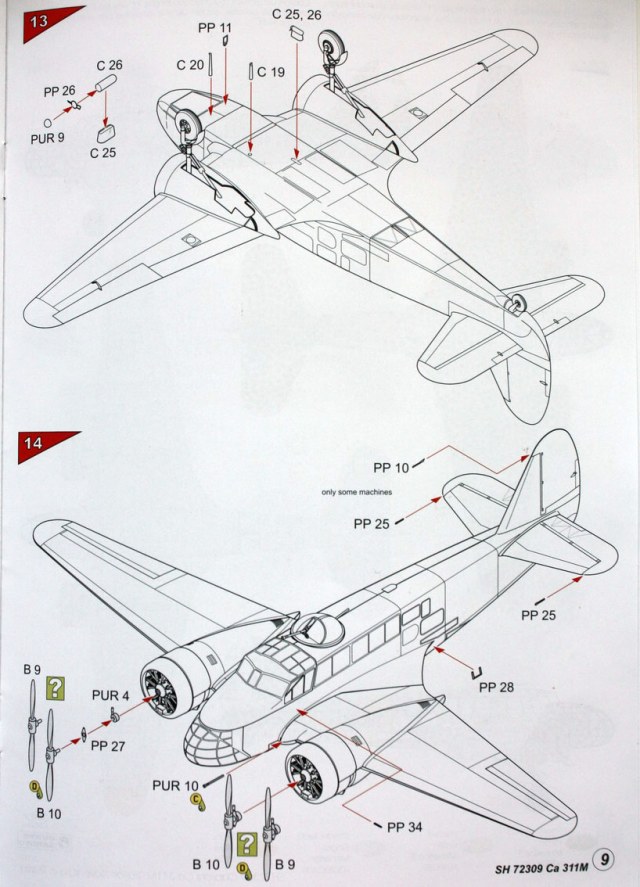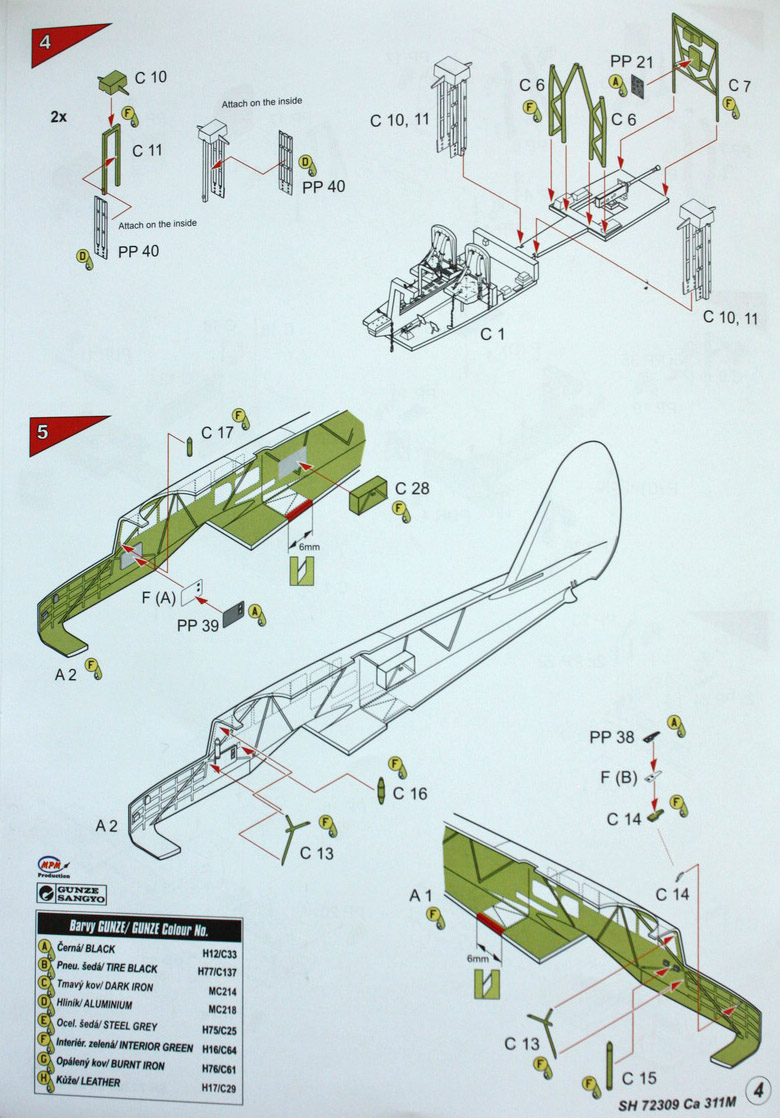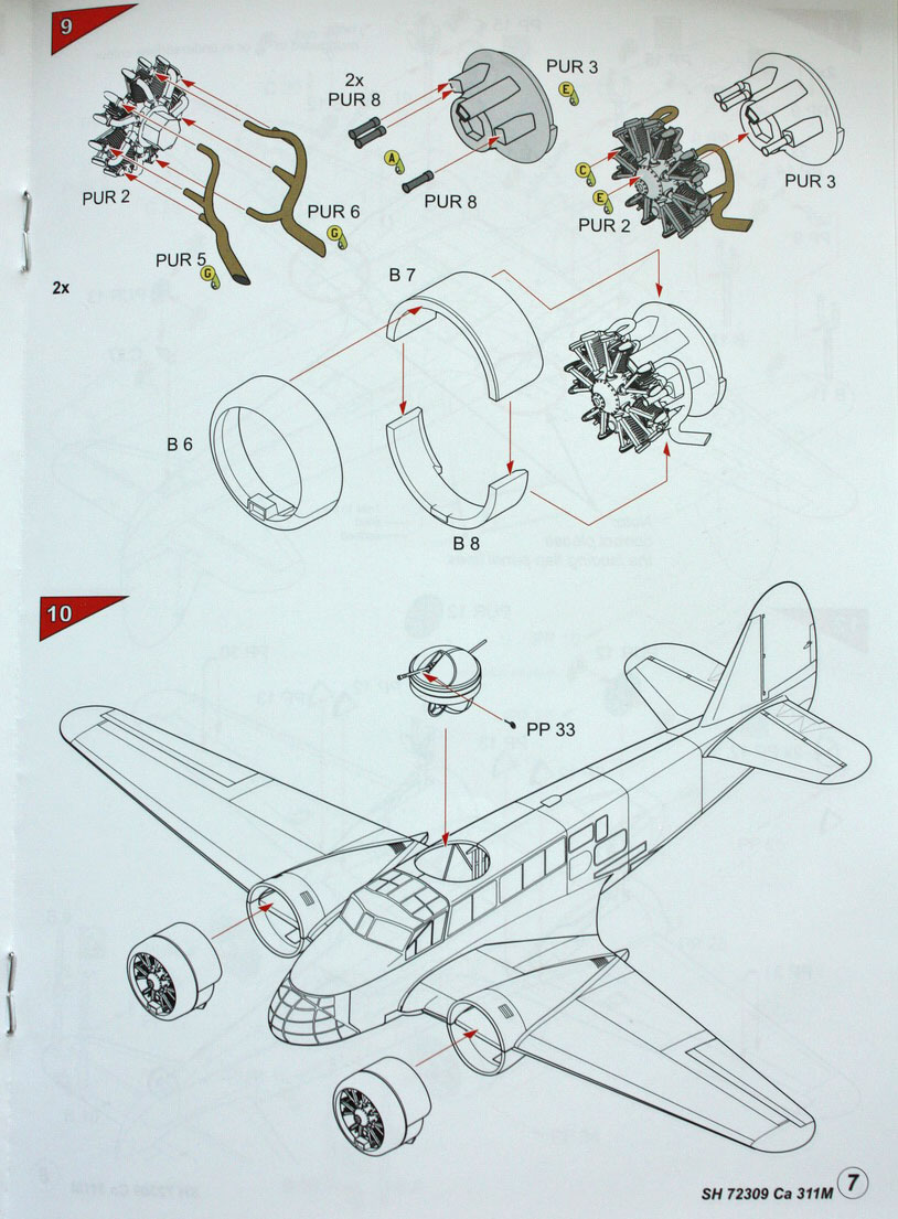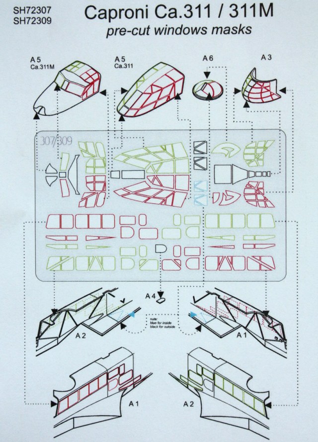 Всё видно на фотографиях, поэтому в описании - только маленькие пояснения. Отличия в литниках от другой модификации Caproni Са.311 - только в том, что в прозрачной рамке с деталями пролита соответствующая модификации носовая часть Са.311М, а неиспользуемая часть обтекаемого фонаря Са.311 при литье заглушена