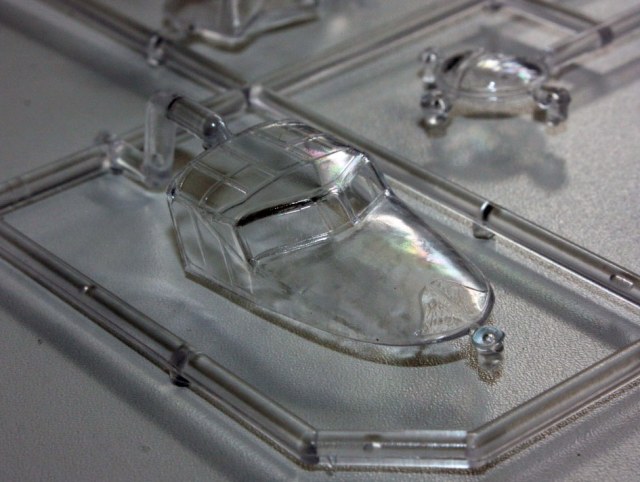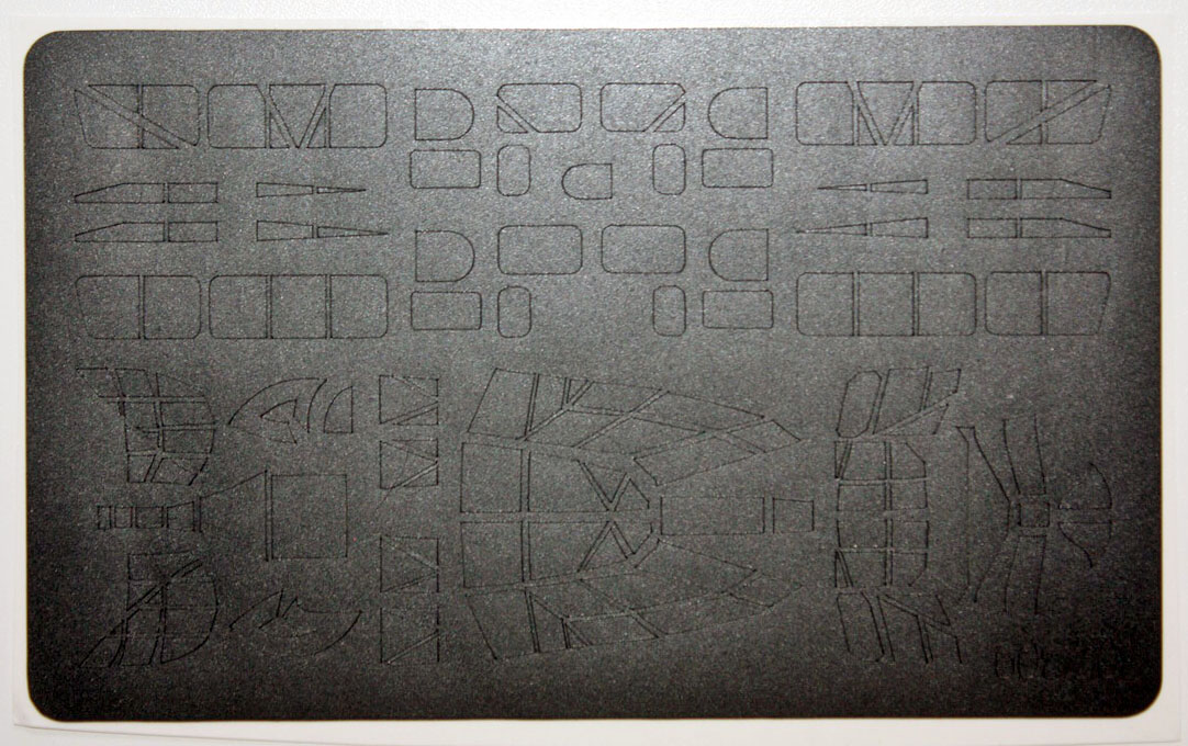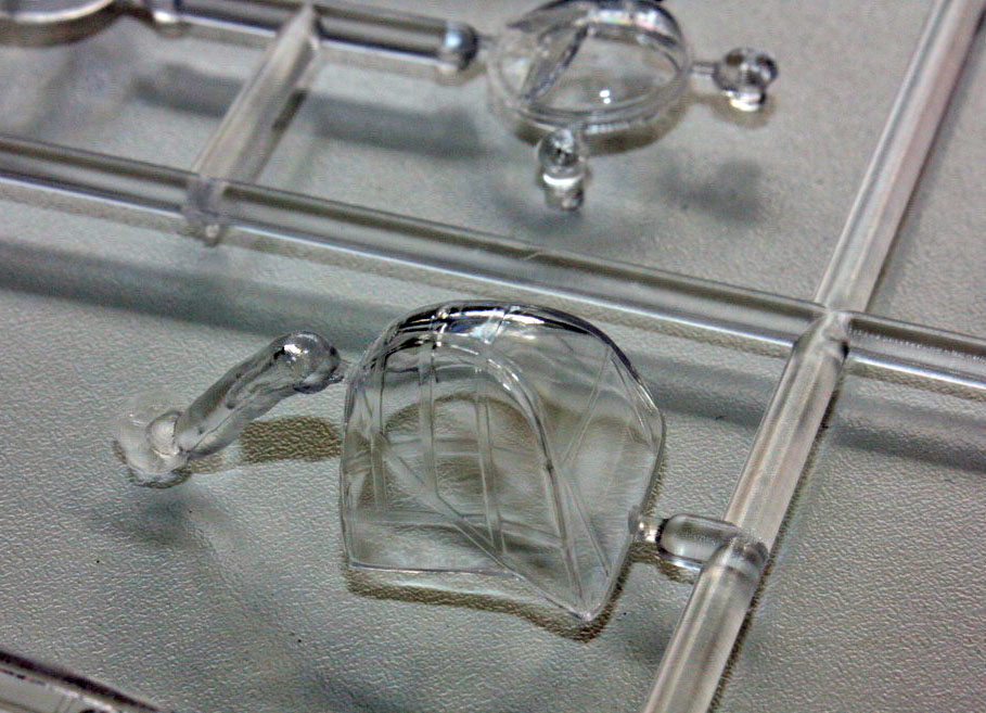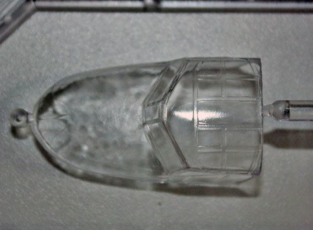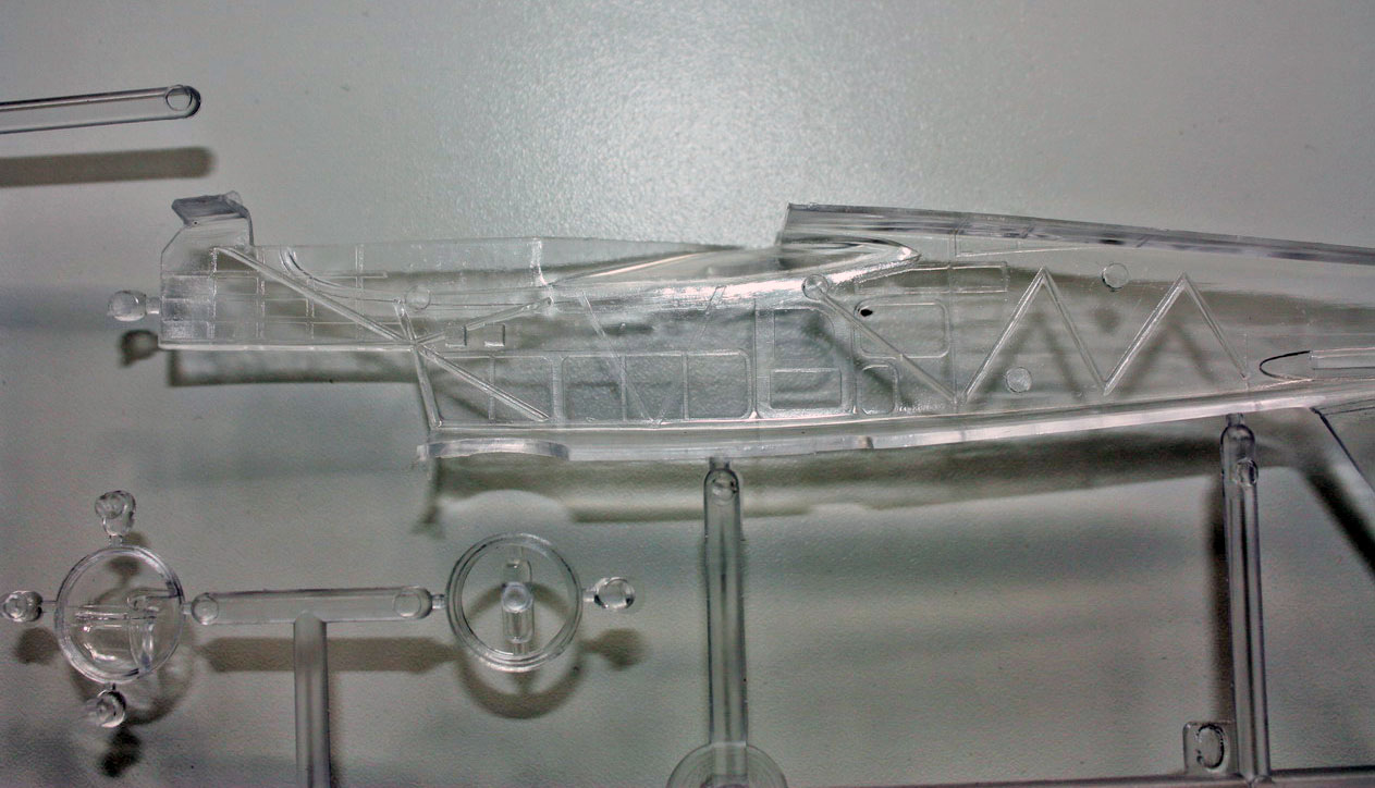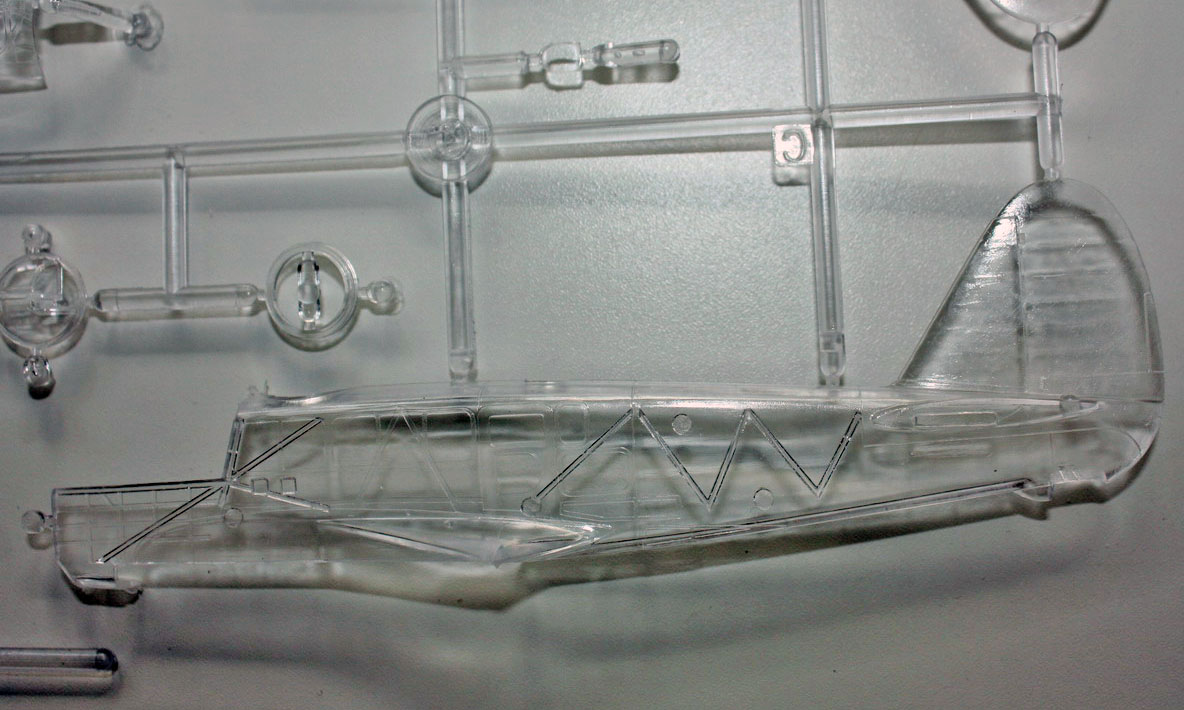 Проблема большой площади остекления - применено хоть и не оригинальное, но редко встречающееся решение. Фюзеляж целиком из прозрачного пластика, при этом в набор входят маски как на внутреннюю, так и на внешнюю сторону.