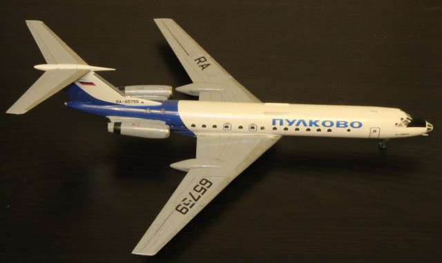 Вполне себе такая модель.Вот только сочленение плоскостей с фюзелем маленько огорчает.Побольше-бы аккуратности при сборке.Да,обратите внимание на количество и размещение иллюминаторов на прототипе и модели.Ну и выхлоп ВСУ просверлите до купы.)))) Фоток маловато и "пузо" вообще не показали.