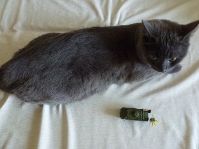 Прикольный броневичек. Кот на низком старте))
