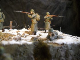 Задумка интересная... Мне кажется не совсем удачно, для воплощения, выбран набор "Советская пехота в зимней форме 1941-1942 гг". Всё таки декабрю 39-го "Будёновки" или СШ-36 было бы самое то.