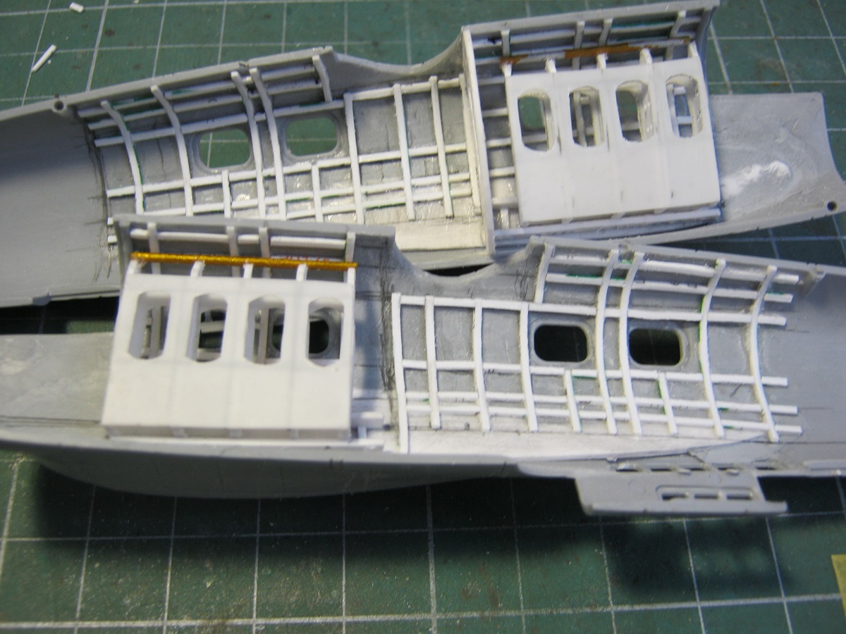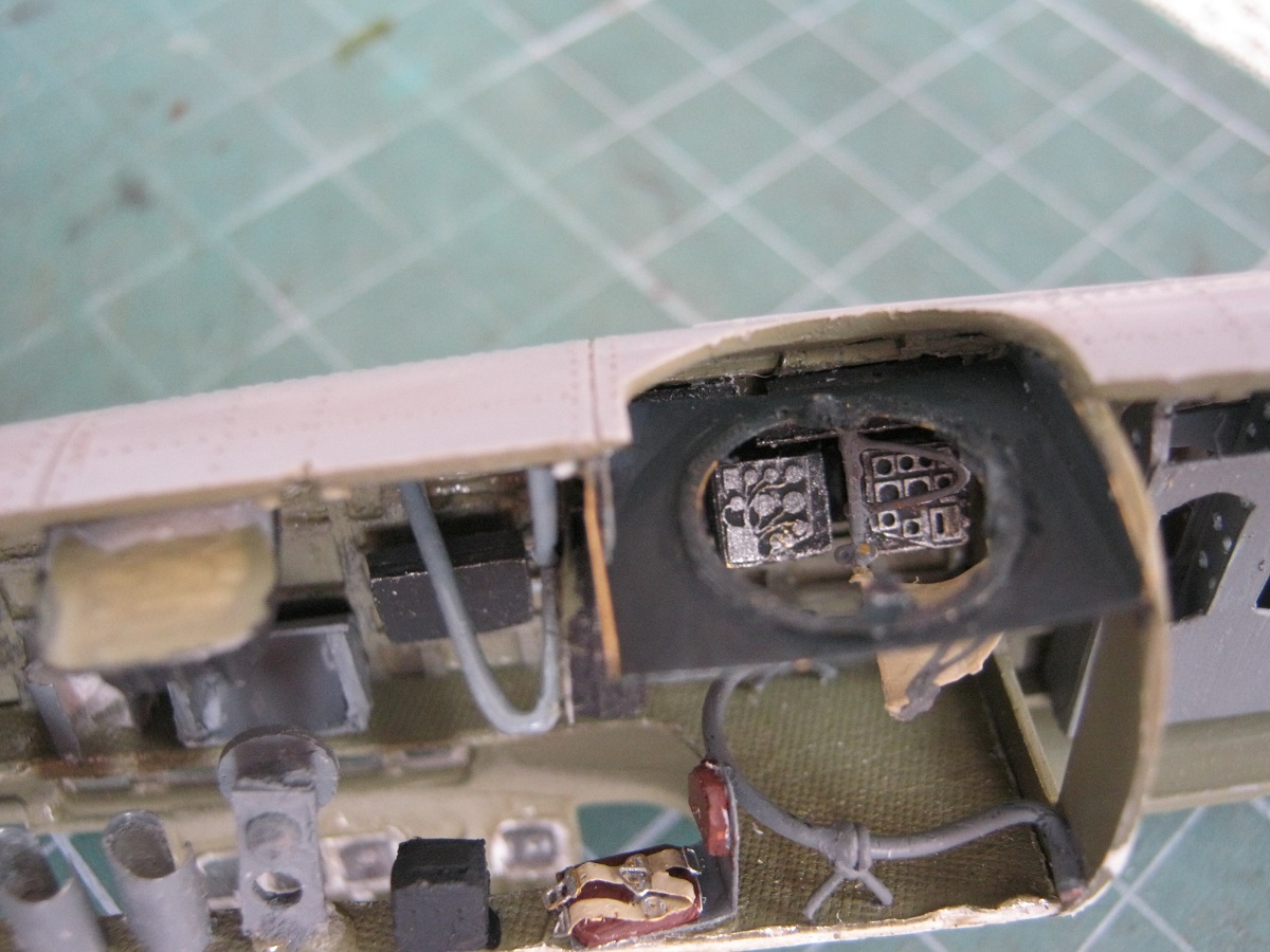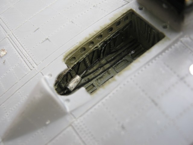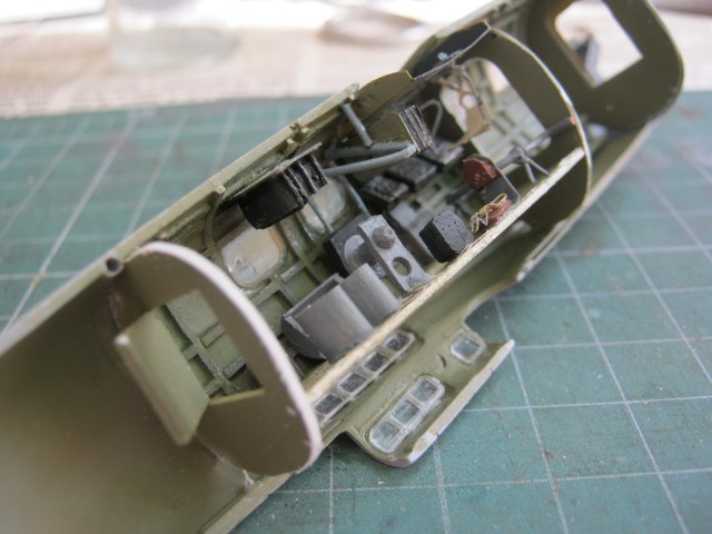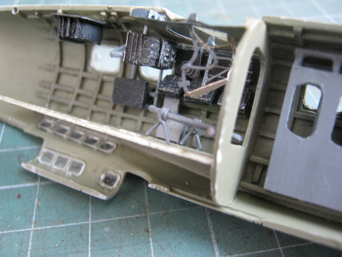 Очень не понравился интерьер кабины стрелков, его там собственно и не было. По этому было решенозаняться интерьером кабины «по взрослому». И работа закипела. Для начала были заделаны ниши кабине стрелков, затем сделал силовой набор и кассеты для бомб. Ну и в заключении из подручных средств изготовил радиооборудование и другие элементы интерьера, добавил фототравления, покрасил.