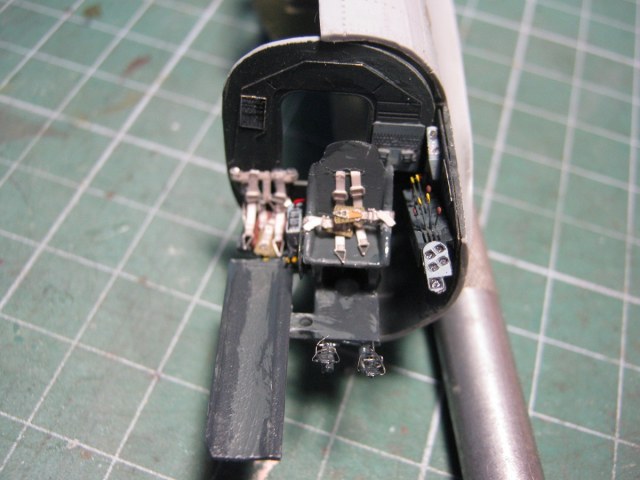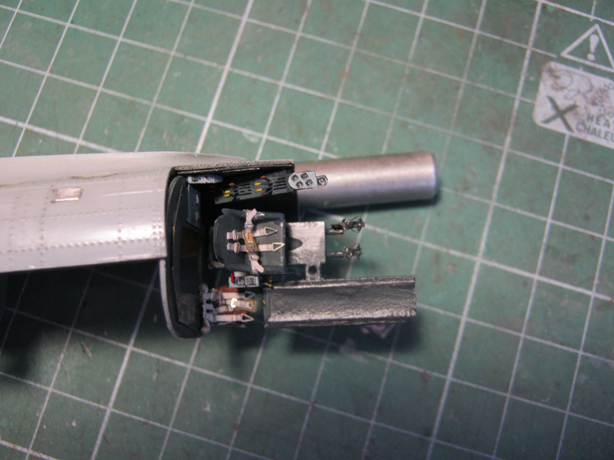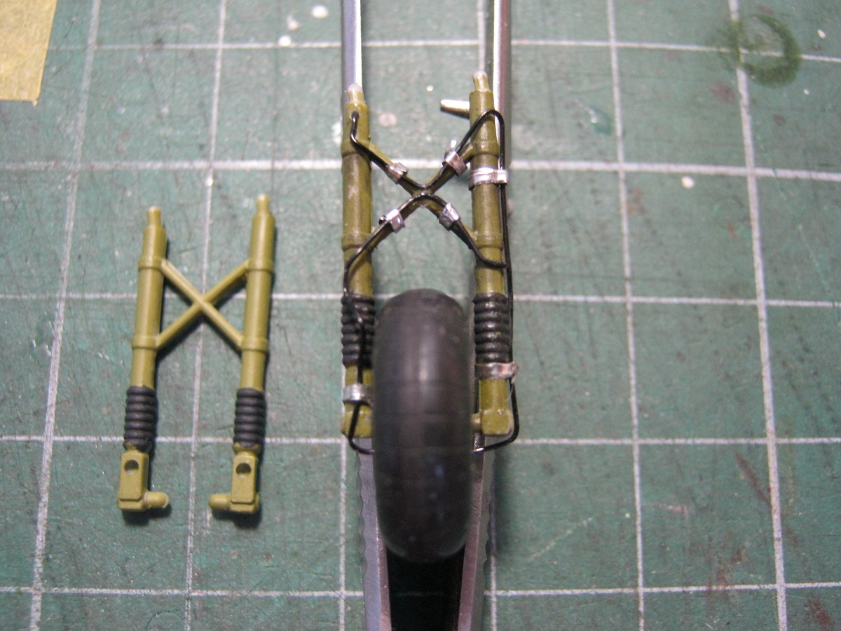 Следующим этапом работы стали ниши основных стоек шасси, ибо то что предлагала «Звезда» меня не устраивало. По этому собрав в кучу не много проволоки пластика и пивжести в итоге получил вот это.
