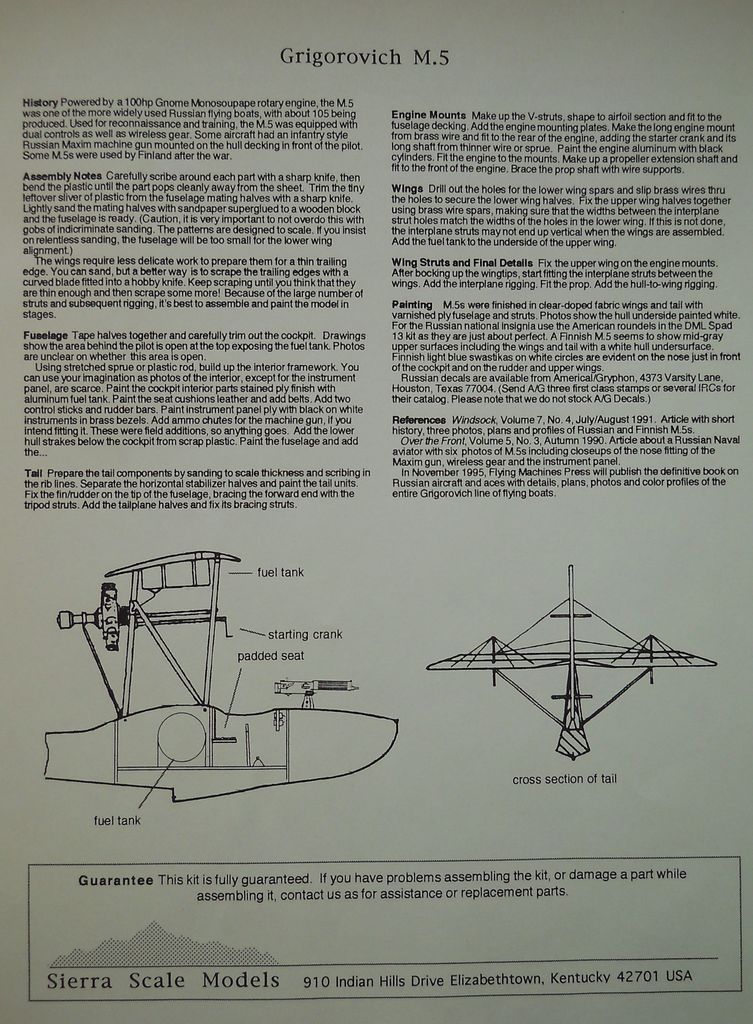 До выхода модели от Copper State models набор от Siera был безальтернативным. Модель может представлять интерес для моделистов, интересующихся ПМВ и отечественной гидроавиацией.
