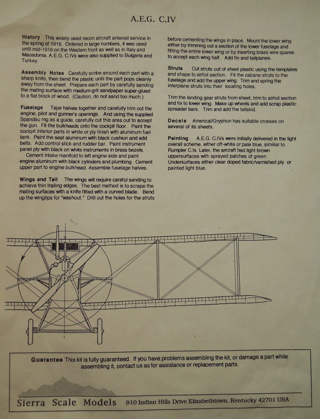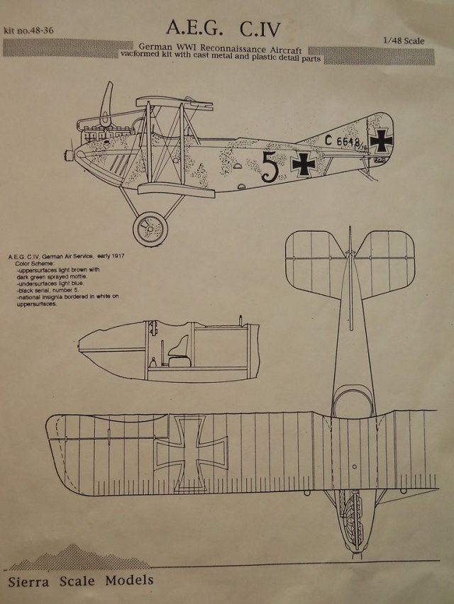 Немецкий фронтовой разведчик A.E.G. C.IV совершил свой первый полёт в 1916 году. Всего построено около 400 экземпляров. Подробнее об этом самолёте можно прочитать тут.