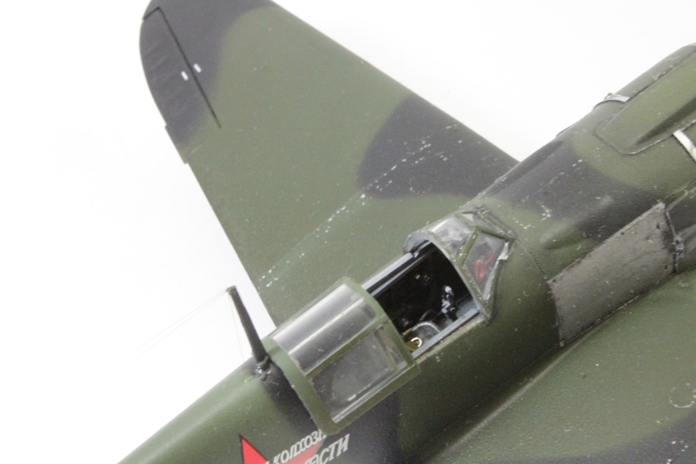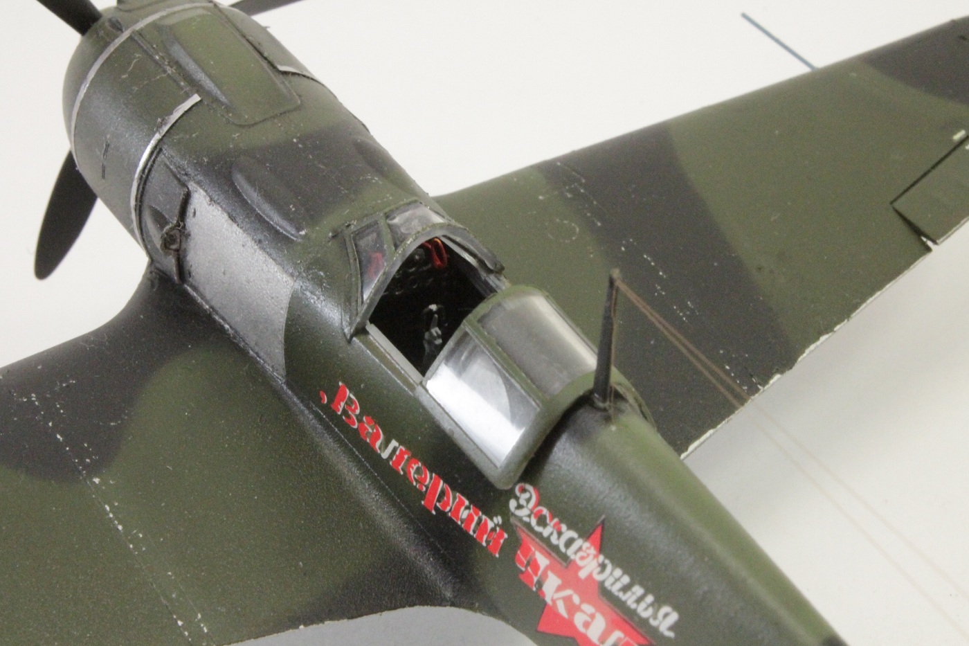 Сборка модели оставила очень приятное впечатление все стыковалось на щелчек. От себя добавил тяги выпуска и уборки шасси из мед иглы из нее же трубка ПВД. Антенна нить банта,Аэронавигационные огни витражная краска. В кабину добавил самодельные ремни из остатков травла, тяги перезарядки оружия из медной проволоки, тросики привода руля поворотов из оплетки ТВ кабеля.