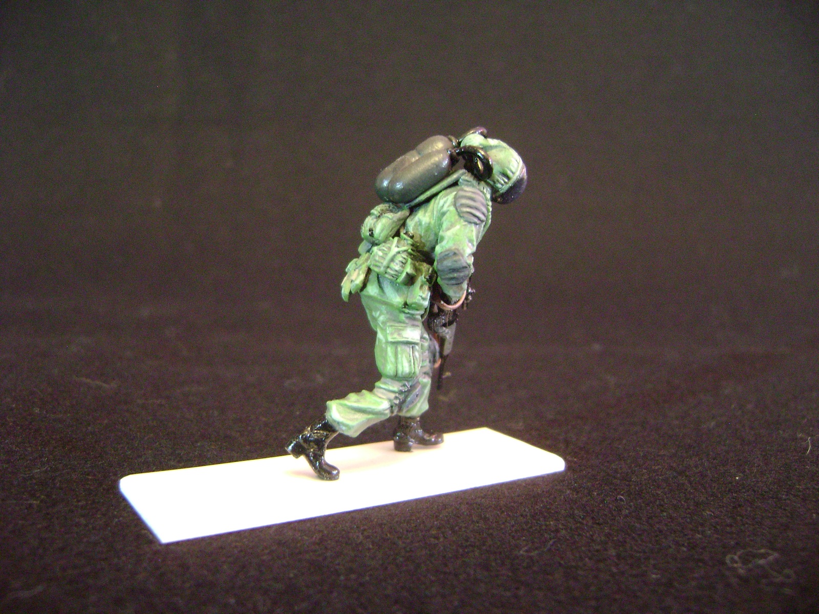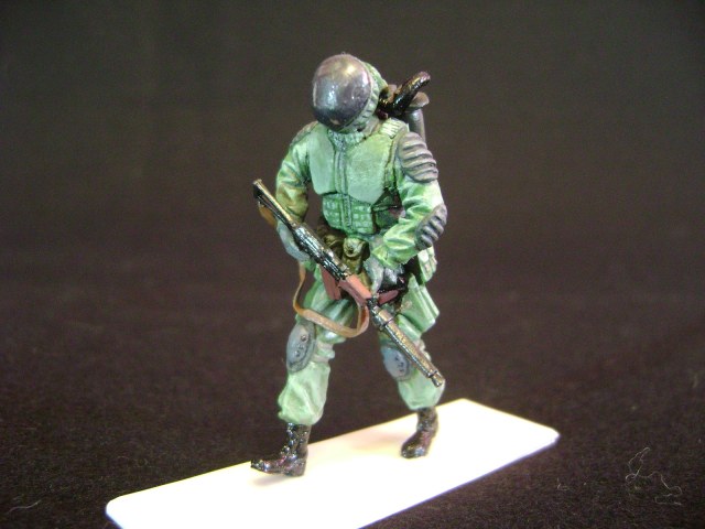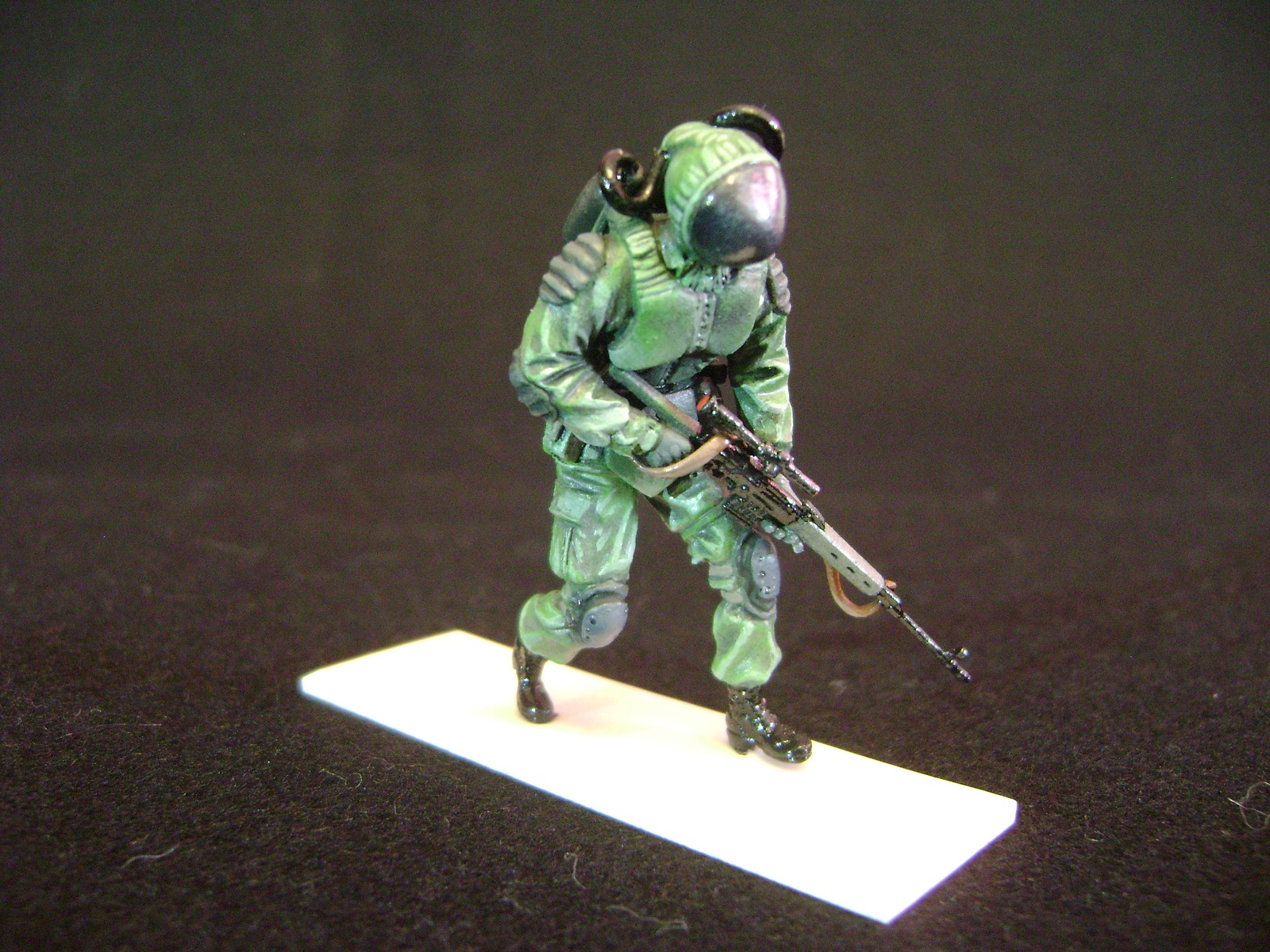 Конверсия фигур от Трубача - изготовлены шлемы, системы обеспечения и фильтрации воздуха, бронежилеты, элементы одежды, оружейные ремни... заменено оружие на Дрегоновские стволы из набора "Семейство АК - 47/74 часть 2".