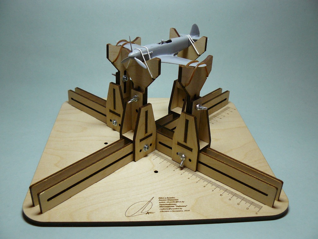 инициатива сделать нужные моделистам вещи из фанеры исходила от меня. Но вариант такой подставки был предложен именно с подачи моих коллег на форуме аналогичной тематики http://modeli.by/index.php?option=com_kunena&view=category&catid=36&id=5656&Itemid=102 по итогу опроса.