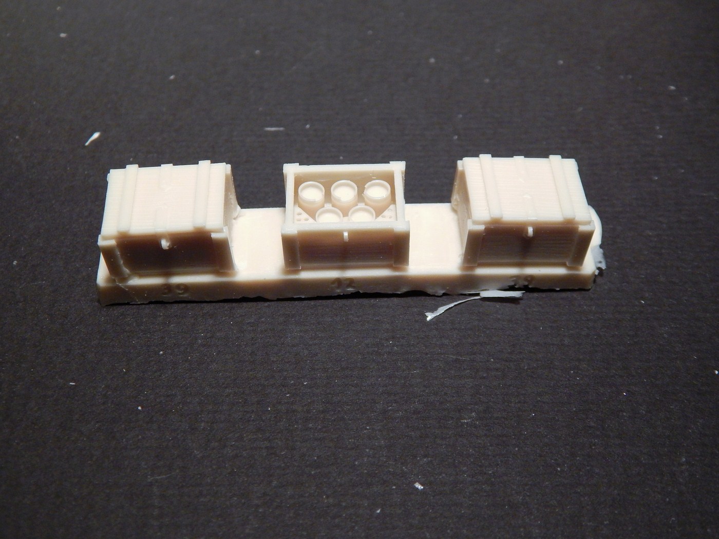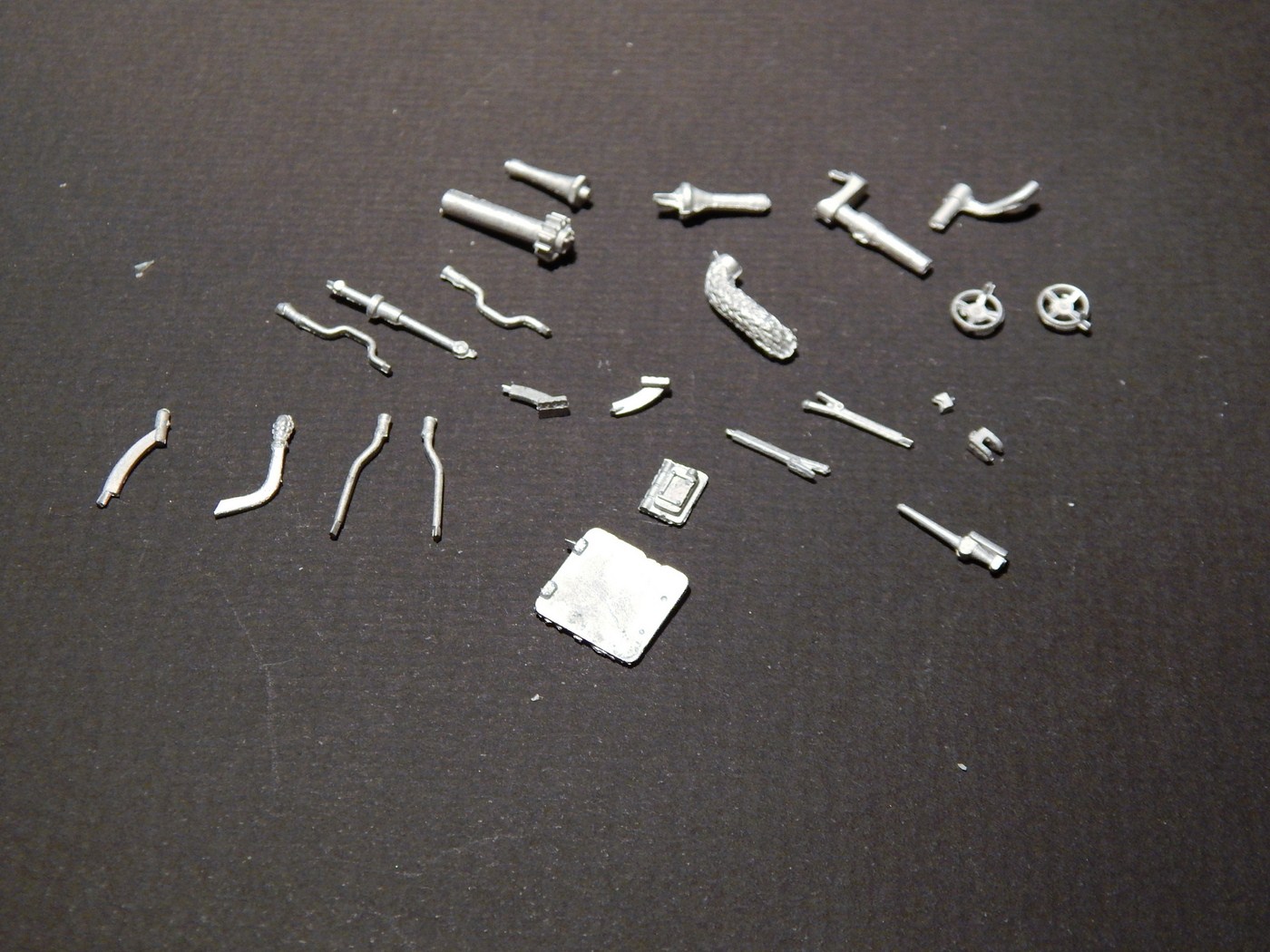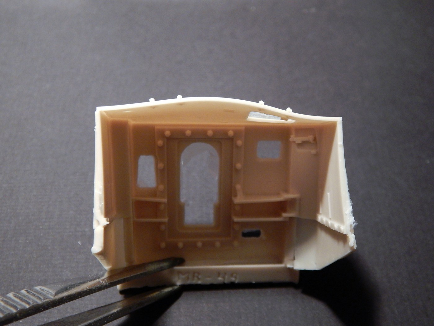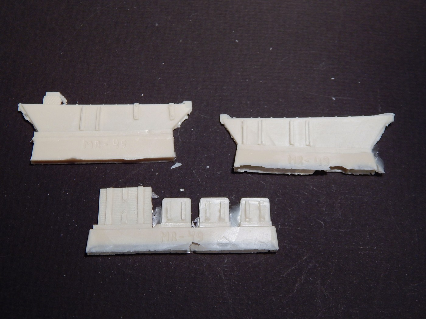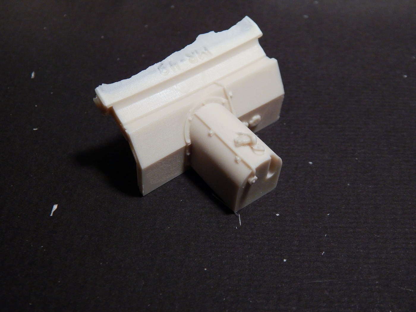 Сразу скажу, что я никогда всерьез не сталкивался со смолой. Не лил, не собирал смоляные наборы и т.д. Читал, что смола капризна, плохо собирается, надо много шпаклевать... В общем, после того, как я заглянул в коробку с набором, я понял, что это первый и последний набор из смолы, который я буду делать. Выглядит все очень непросто. Самая страшная часть - рубка. Крыша поведена волной, боковина пытается оломаться по шву. Остальное выглядит более-менее неплохо, всякие ящики вообще отлиты чисто и четко. На мелочевке есть облой. Ствол разумеется без нарезов, отверстие очень неглубокое. Вроде бы даже прямой. Вообще от всего этого становится грустно, появилась мысль просто обмерить детали и сделать по ним из пластика, к которому я более привычен.