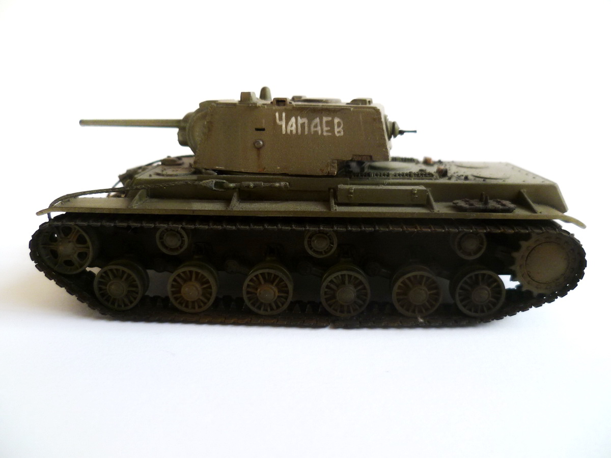Здравствуйте, уважаемые коллеги-каропчане! Небезызвестная модель КВ-1 с упрощенной башней от Trumpeter. Внутри коробки приличное литье, на мой взгляд. Облоя нет. Доработки минимальны - заменил сетку МТО, рассверлил патрубки, сымитировал резку бронеплит (получилось не очень), срезал трос на люке МТО.