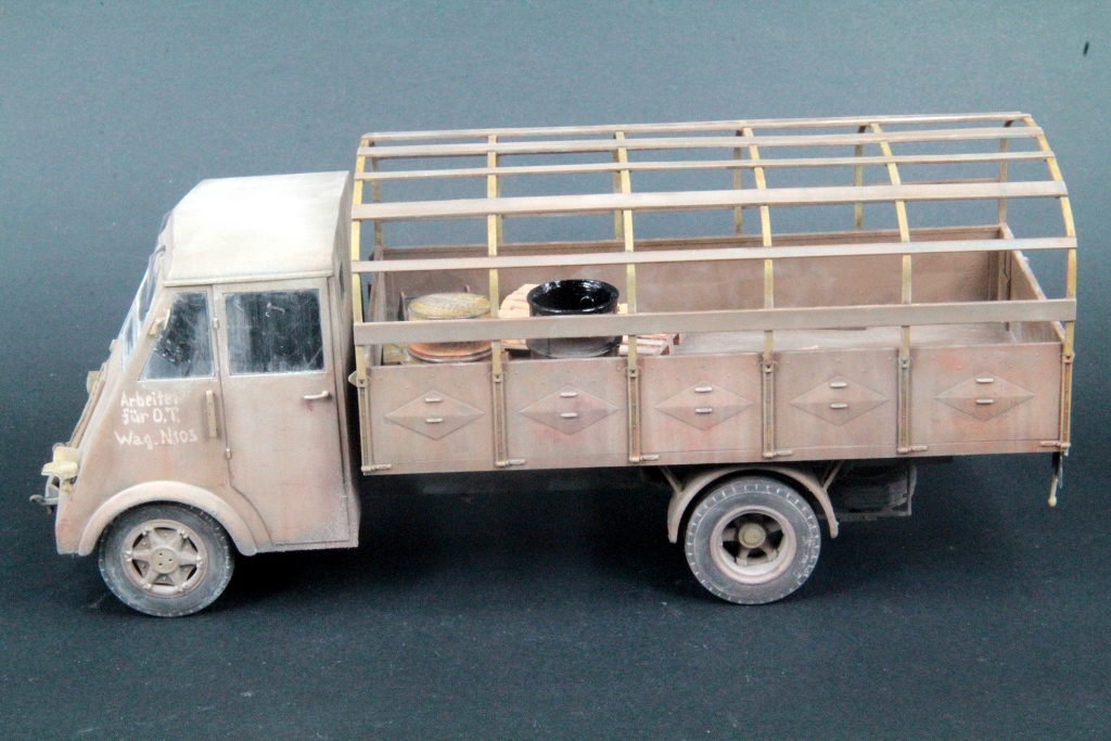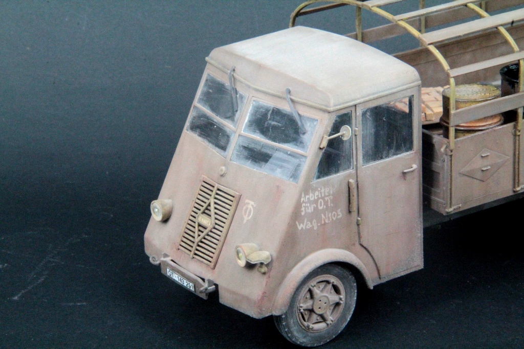 Добрый вечер коллеги, разрешите представить довольно свежую новинку от ICM. Ради нее отложил свой другой проект, и ничуть не пожалел, давно не встречалось столь запоминающейся внешности представителя французкого автопрома на благо немецкого Рейха, товарищи из Рено, которые производят Логаны, мы все помним кто кому, что поставлял ). Ну а теперь непосредственно к модели - традиционная отличная собираемость, хрупкий пластик и политиленовые шины. Окрашена Тамией, везеринг Wilder текстурные наборы, пигменты Миг. Наполнение кузова от разных производителей, что было в наличии и от оставшихся наборов. Из доработок только отражатели в фарах с капелькой желтого лака и воздухозаборник с левого борта, хотел еще повесить огнетушитель спереди, но как то он убого вписался в общую картину и я от него отказался. Вариант окраски мне не понравился, тот что дает производитель, да как то сразу понял, что буду делать рабочую лошадку из организации Тодта, тем более ждали своего часа госсномера, данной организации. Сборка с покраской заняла примерно две недели. Спасибо.