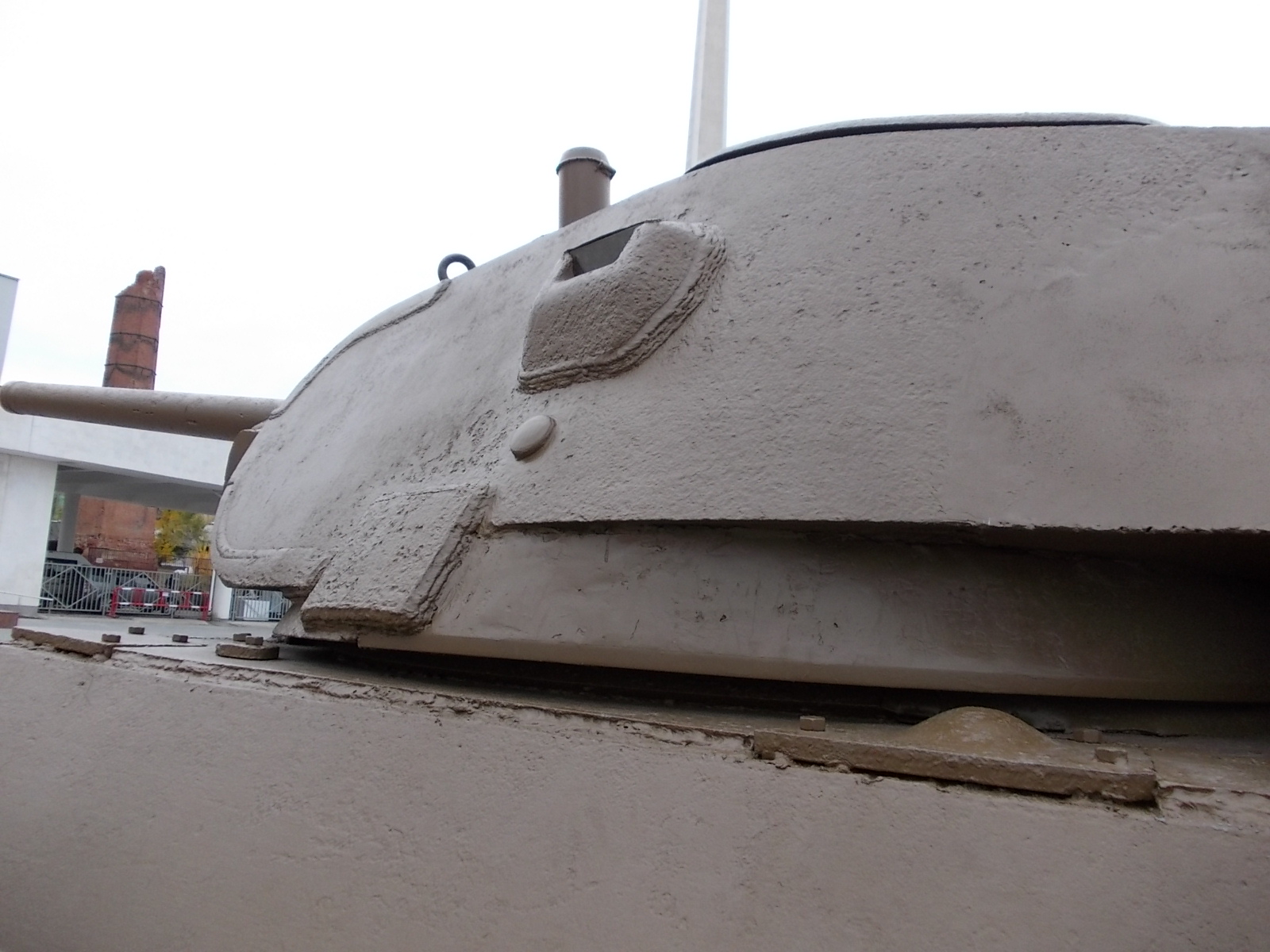 Башня на танке вообще не доделана. Реставраторы сильно схалтурили. Корма башни новодел, даещë косо приваренный. Без родной кормы сложно судить башня ХПЗ или СТЗ.